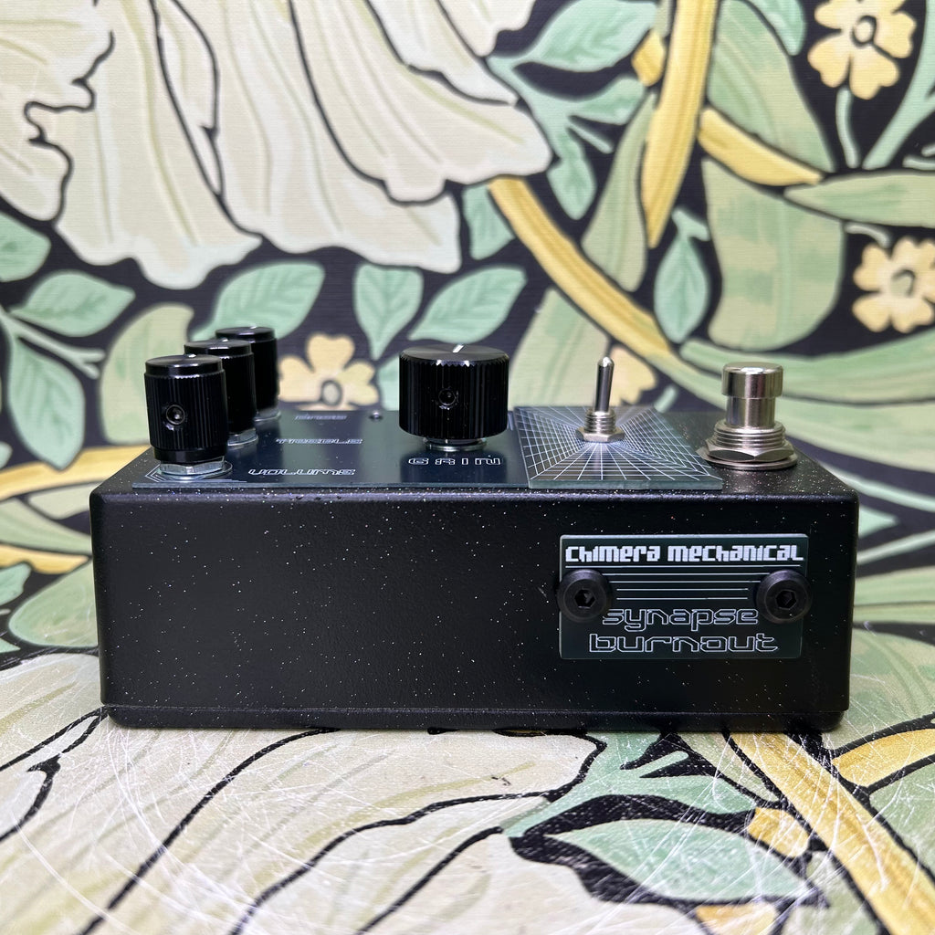 The Synapse Burnout is a 4 track portastudio preamp // fuzz pedal. Keep the gain turned low, and get the overdriven crackle that 4 tracks naturally have, while still reaching well above unity. Turn that gain up and get an awesome high gain vintage fuzz. This thing really makes you sound early 90s, Guided by Voices, Duster, etc. Pair this with the Jet Lag and have all the lo-fi racket you'll ever need.