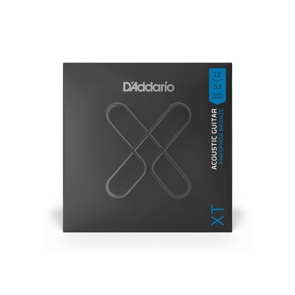 XT Acoustic Phosphor Bronze strings combine our most popular acoustic alloy with an extended lifespan treatment on every string in the set, preserving the natural tone and feel of uncoated strings. Available for 6 and 12-string acoustic guitar ranging from extra-light to medium gauges to suit a variety of playing styles and preferences. D'Addario XT strings feature high carbon steel cores with an extended lifespan treatment on every string in the set, giving you enhanced break resistance, pitch stability, and long-lasting performance. all while preserving the tone and feel of your favorite uncoated strings. These strings are made to stay, for performance that never fades away.