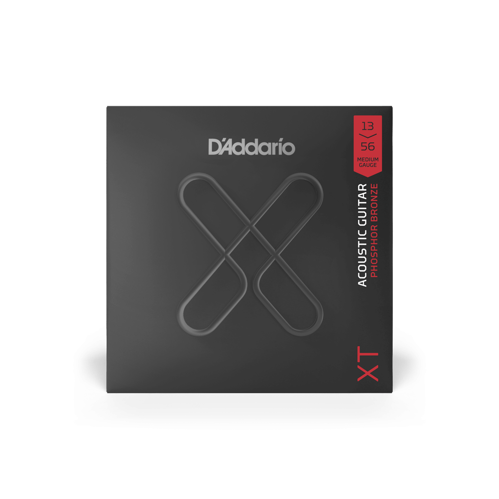 Since D'Addario introduced Phosphor Bronze acoustic guitar strings in 1974, they've been synonymous with warm, well-balanced tone. XT Phosphor Bronze offers that and more, boasting enhanced break resistance, better pitch stability, and longer life than our standard phosphor bronze strings. The XT coating delivers advanced corrosion resistance, while still retaining the warm tone and natural feel of the uncoated string. Beneath the coating, these XT acoustic strings are constructed with a NY Steel core, phosphor bronze wrap wire, and Fusion Twist technology, affording tonal versatility with added resilience, excellent for a wide range of acoustic styles. This 13-56 Medium gauge set provides maximum volume and projection, with more tension and resistance.