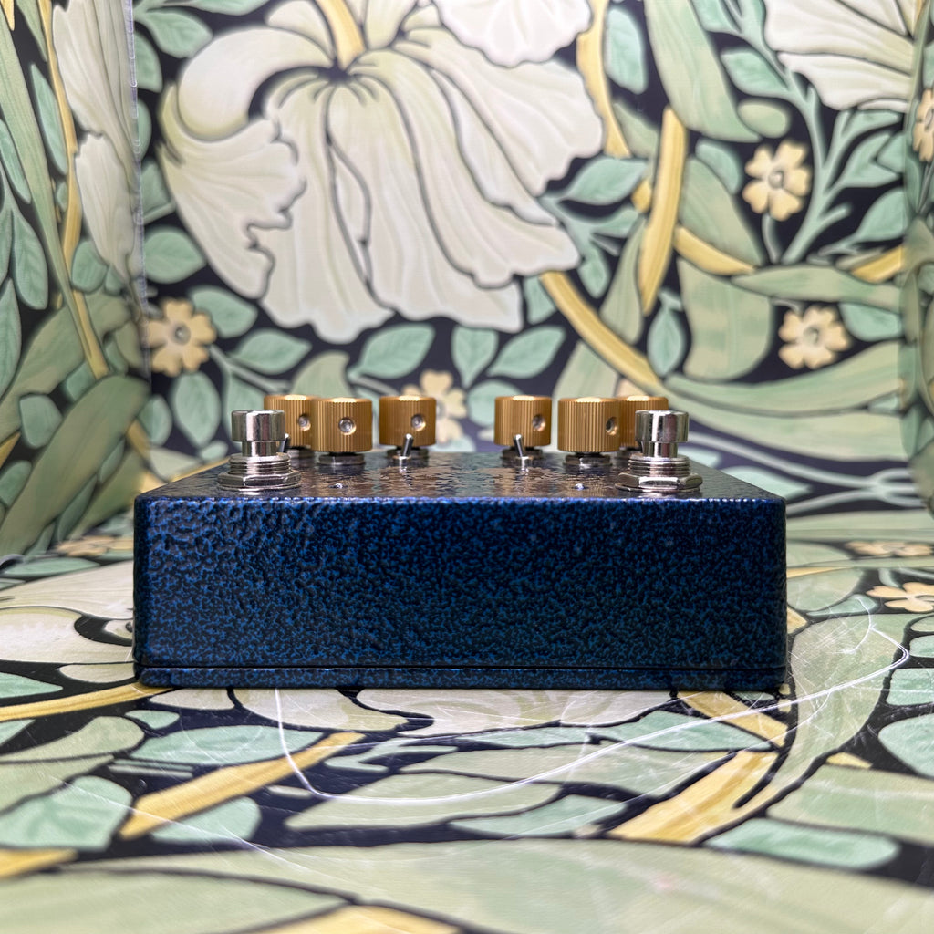 It consists of two Decibelics Golden Horse circuits, A&B, with two separate channels that can be used either individually or stacked. It solves the eternal dilemma of using a single Klon/Golden Horse either as a Clean Boost or as an Overdrive, and opens a new world of exquisite tones and textures when combining both channels.