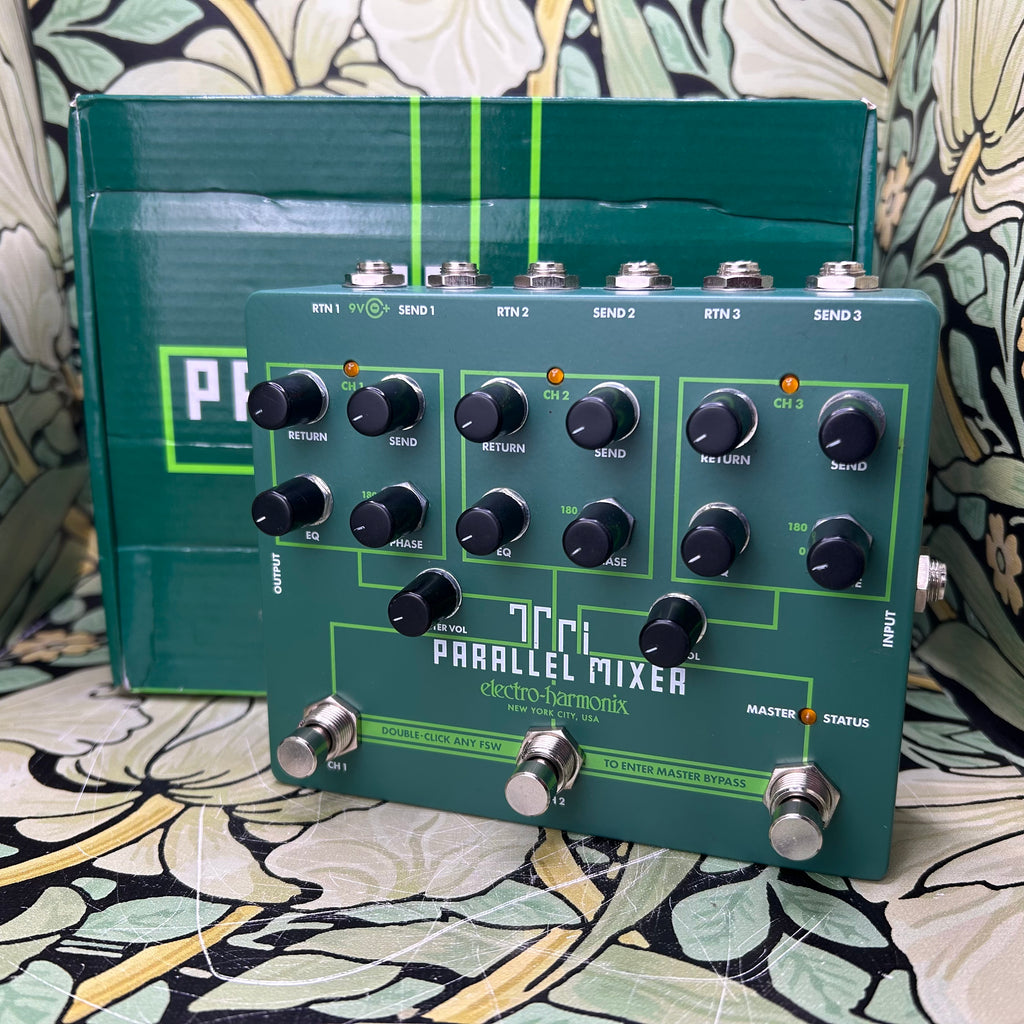The EHX TriParallel Mixer is a powerful effects creation and mixing hub with three separate FX loops and flexible controls allow for multiple configurations.