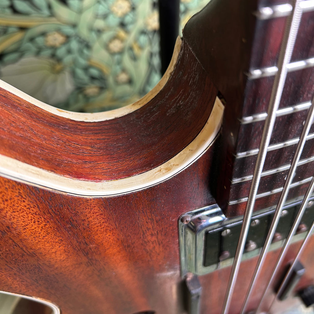 A clear, matte finish highlights this bass guitar’s natural beauty. Sure, this Starfire has seen some paytime in its almost 60 years here on planet Earth (see pictured) but you can rest easy knowing we've taken great care to ensure it plays as good as it looks!