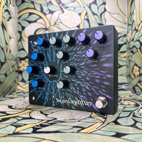 Ever inspired by the concept of embiggening sound, Old Blood Noise Endeavors have created a device that goes beyond doubling, offering three overdrives spread apart in time to create three instruments out of one. With three different overdrive voices, and control over the delay time, feedback, and time variation of two of those voices, Beam Splitter creates a trio out of a solo player, in parallel mono, stereo, or trereo.