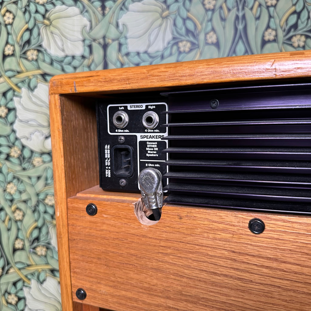 This solid-state beast is housed nicely inside a beautiful wooden cabinet with an Electro-Voice EVM12L Black Label speaker. It rips!