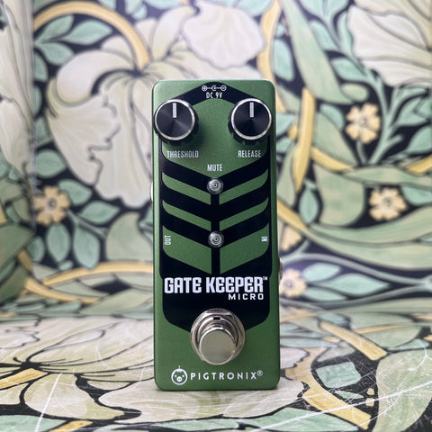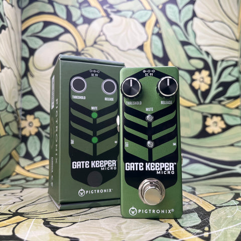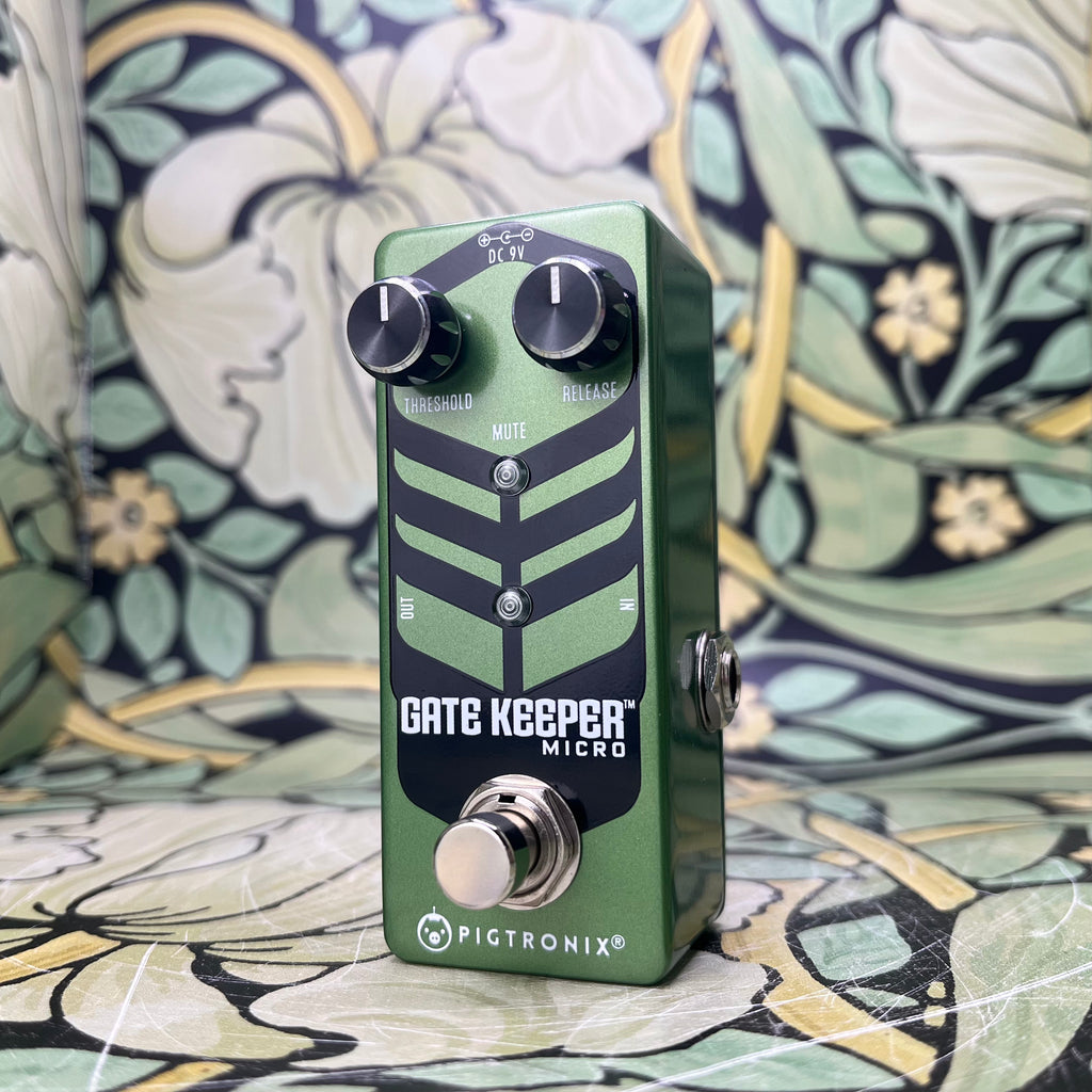 Gatekeeper is a lightning fast, studio-quality noise gate that locks out unwanted noise from any rig. Featuring Threshold and Release knobs, Gatekeeper provides 100% attenuation with unprecedented response time and utilizes ultra high-speed J-FET circuitry to completely eliminate hum, hiss, buzz and any other intrusive non-musical sounds from your signal path. Its wide range Threshold control combines with exceptional headroom to deliver smooth transient response previously available only in rackmount, studio-oriented noise gate processors. The addition of the Release knob allows the user to control how long it takes the gate to slam closed.