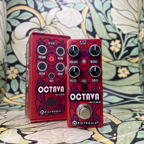 Octava is an all-analog octave fuzz / frequency doubler featuring an on-board low pass Filter control that allows you to achieve singing octave up tones anywhere on the neck, without adjusting your guitar’s tone control. A front-end Drive and gushing Fuzz circuit add signal power and easily convert Octava to shoegazey fuzz pedal capable of producing devastating, full-wave rectified distortion. Use the Blend knob to mix the octave up effect on top of your dialed-in drive.