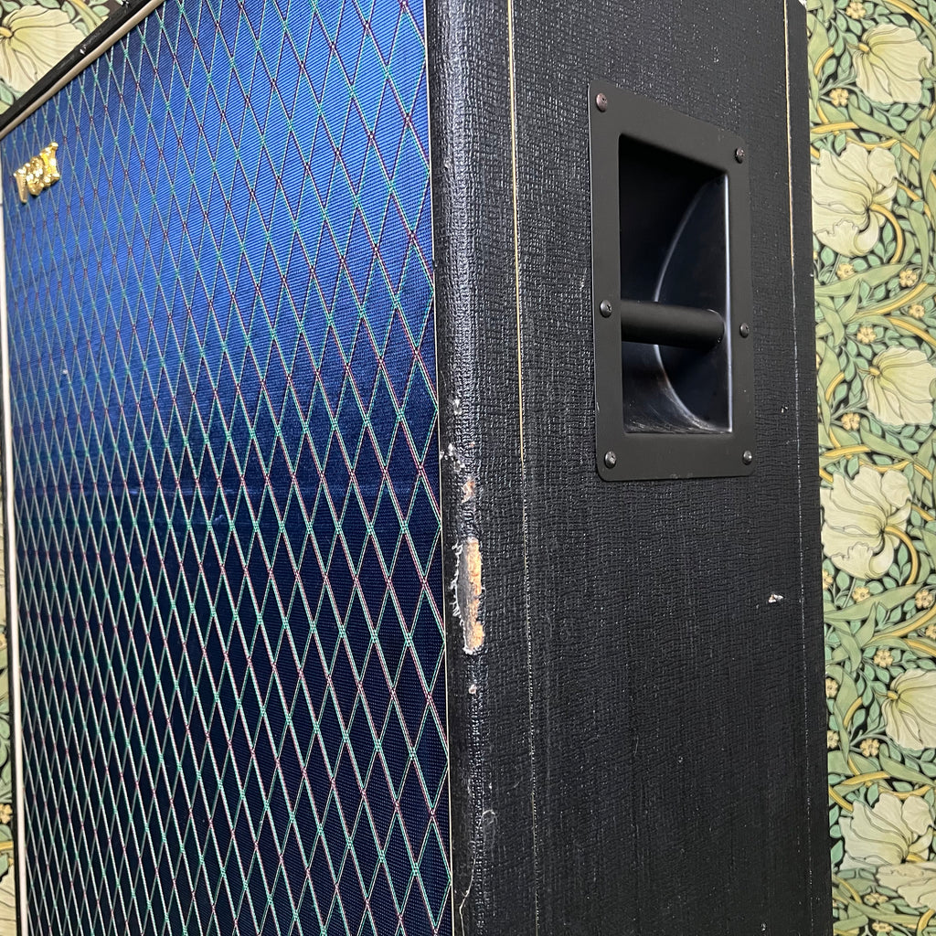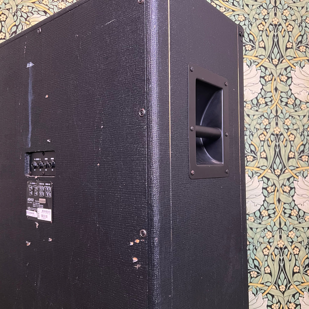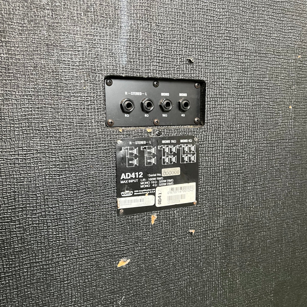 The AD412 speaker cabinet was originally designed to match up with the Vox Valvetronix heads of the early 2000's. Constructed of baltic birch plywood right in here the USA, this cab offers four speaker input jacks, allowing stereo 8 ohm, mono 4 ohm, or mono 16 ohm connections. The power handling capacity is 160 watts RMS per side in stereo, and a full 320 watts rms in mono!