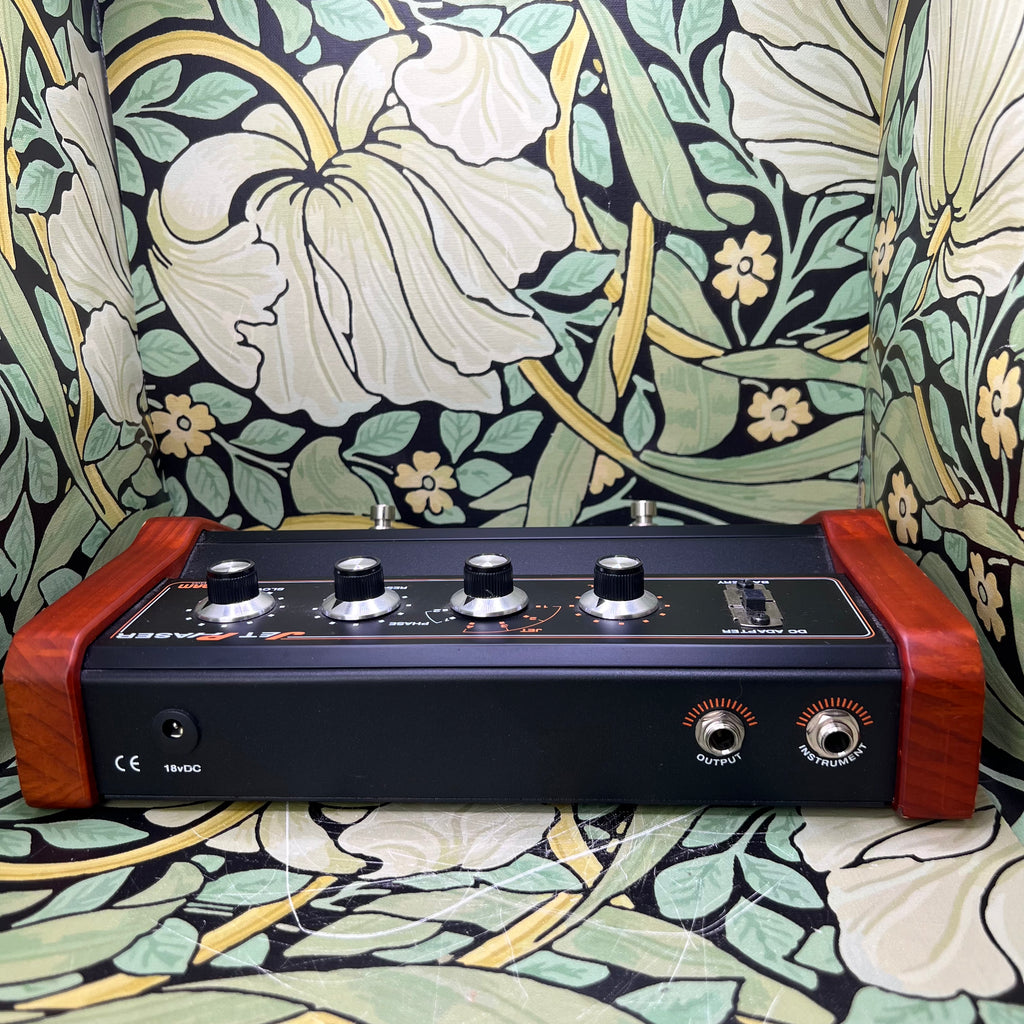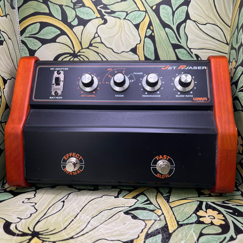 The Jet Phaser contains six modes, with two labeled "PHASE" and four labeled "JET". The two PHASE modes produce traditional phasing effects, with the first having moderate modulation depth for more subtle sounds, and the second having increased depth for more exaggerated results.