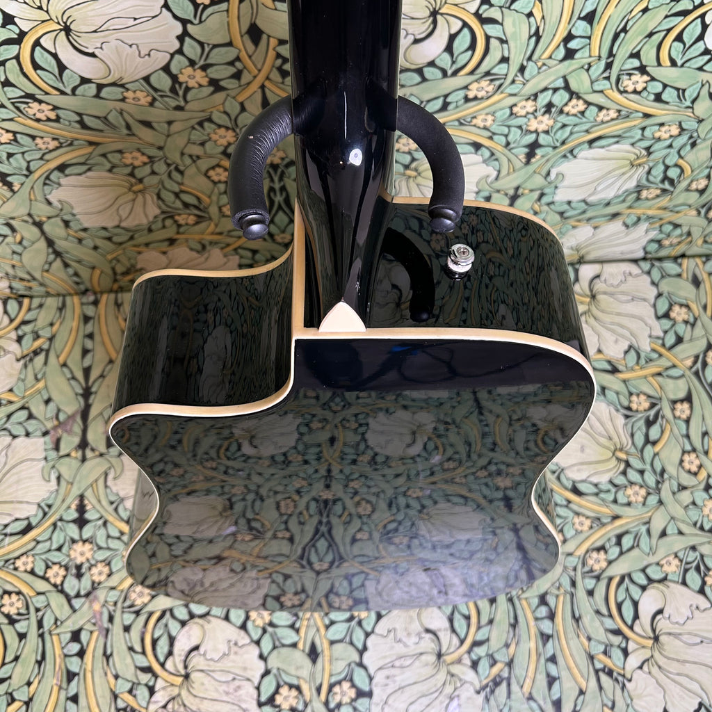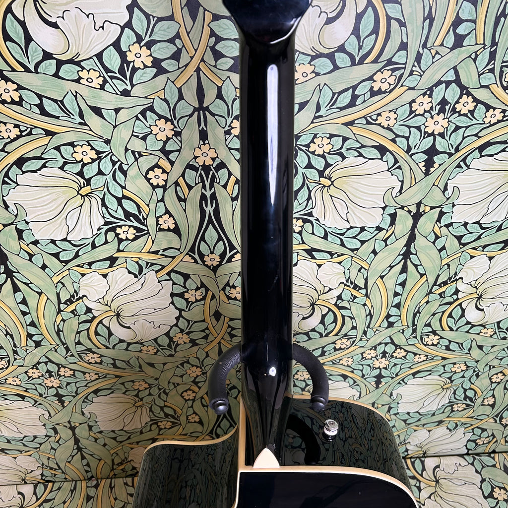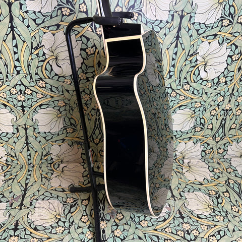 It comes loaded up with the stock Fishman under-saddle piezo pickup system with an on-board EQ and tuner, so you can take your show on the road and plug into an amp or the front of house!