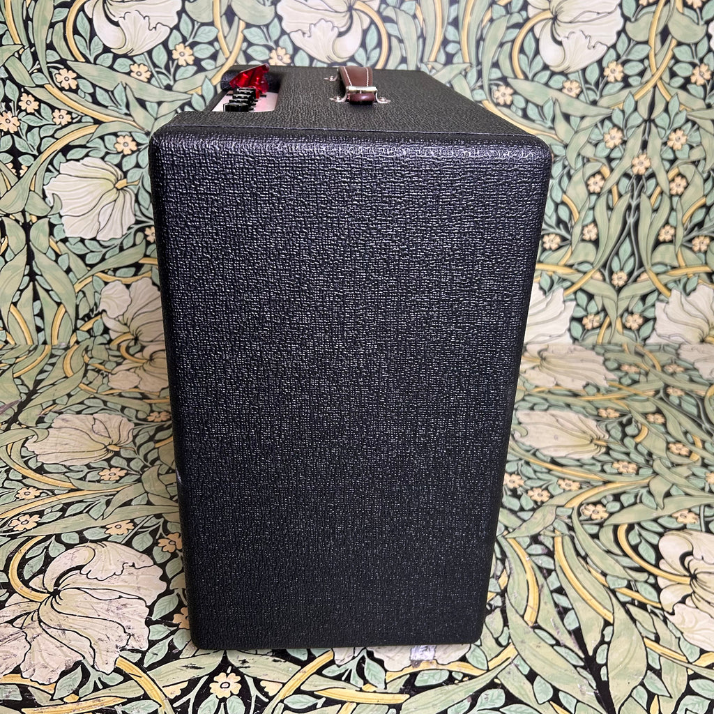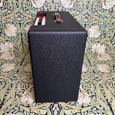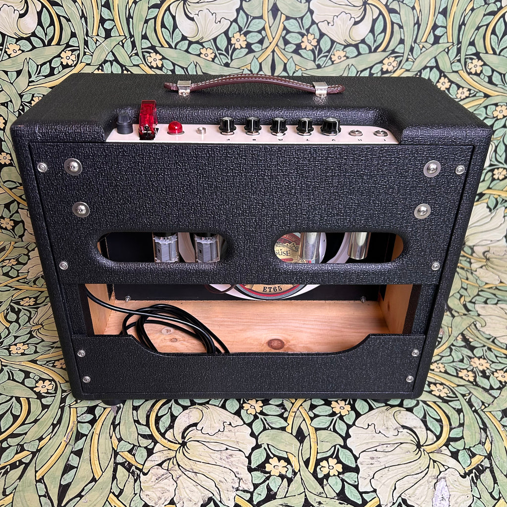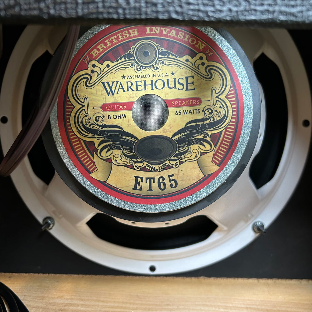 This sick little combo is 20watts of pristine Fender-ish tone pumped through a 12" Warehouse ET65 speaker. Featuring a pair of 6V6's and 12AX7's, this amp pays homage to the early 60's pre-CTS brown era Vibrolux circuit, fully prepared to host whatever pedals you can throw at it, or just plug straight in and dime that volume to send it into blissful tube-saturated breakup.