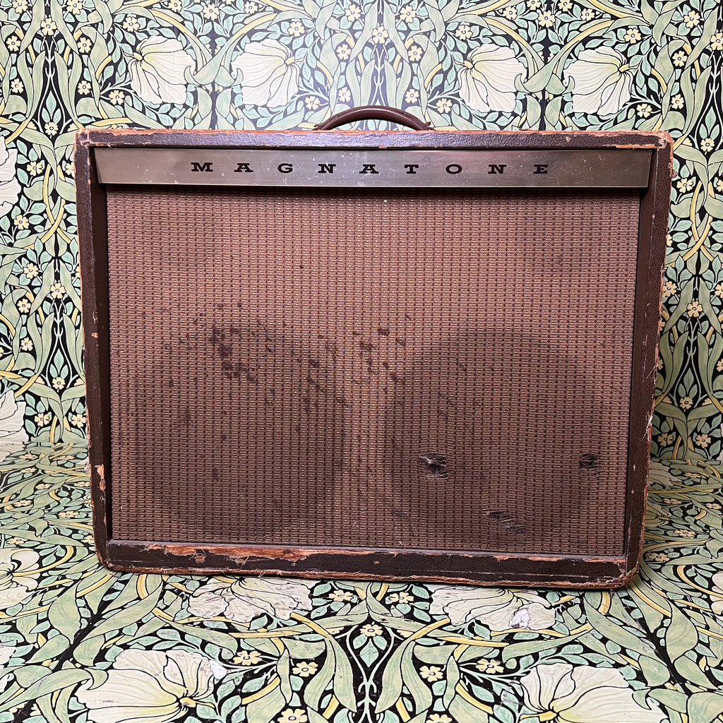 A piece of tonal history sitting right in front. of us. Damn! This Magnatone was one of the premium amplifiers of the late 1950's.
