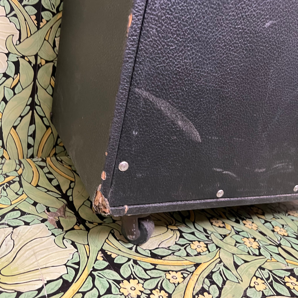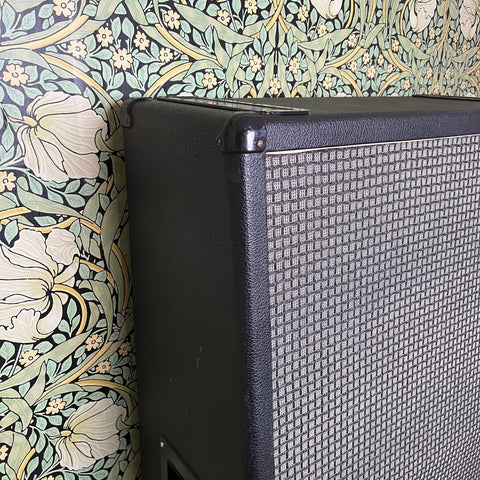 This vintage cab has seen some action but is in great condition and lookin' good, including getting a snazzy re-grill! It functions and sounds amazing and it's ready for your rig. If you have any questions about this cab give us a call here at the shop!