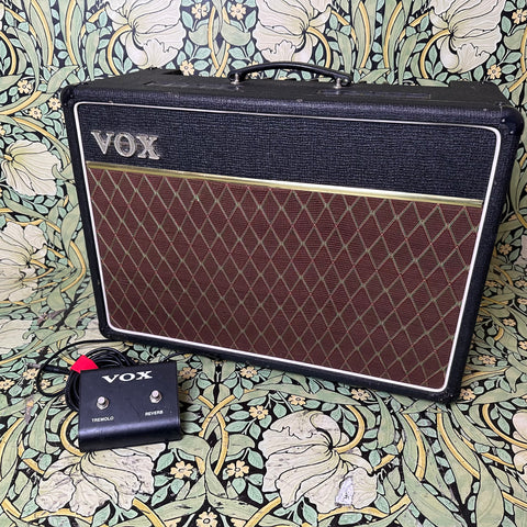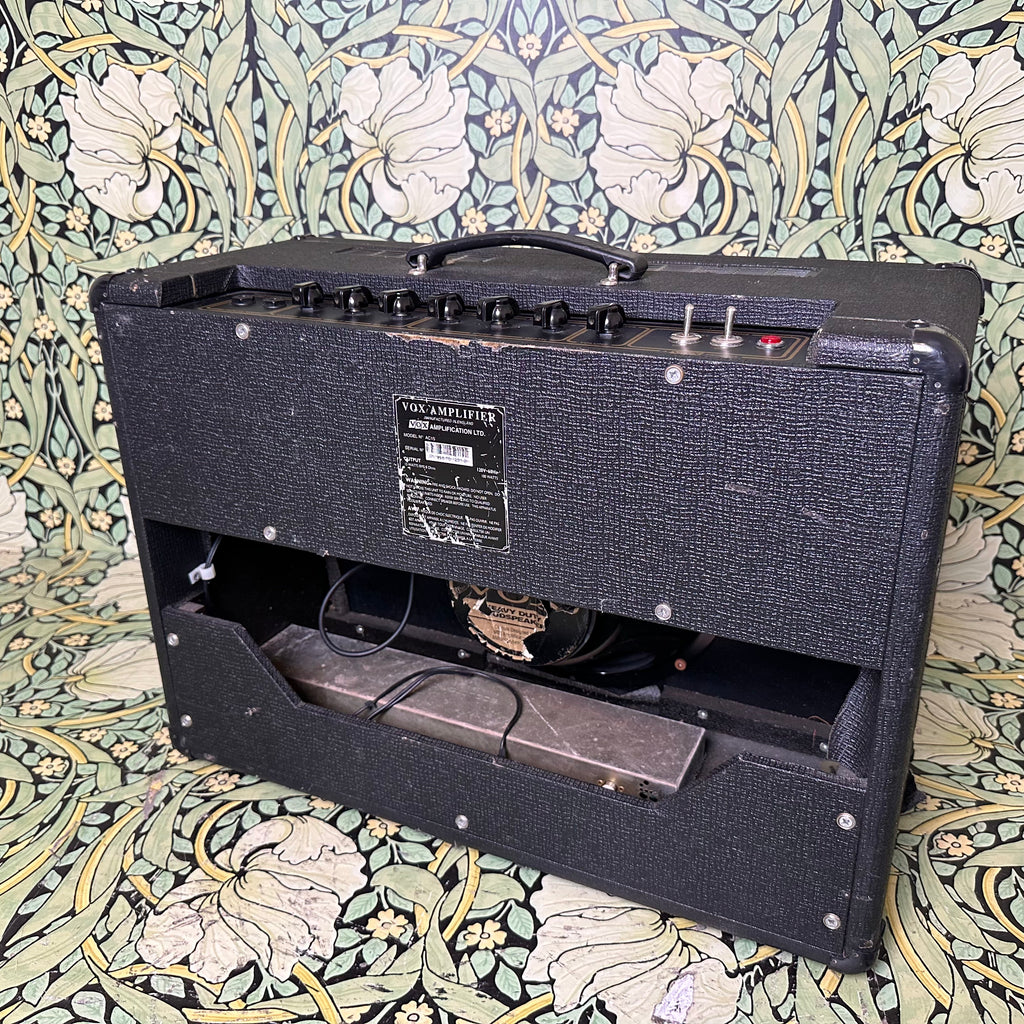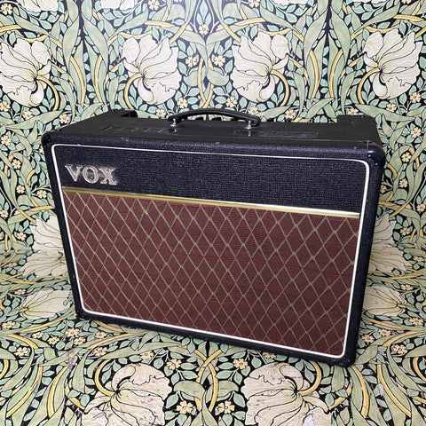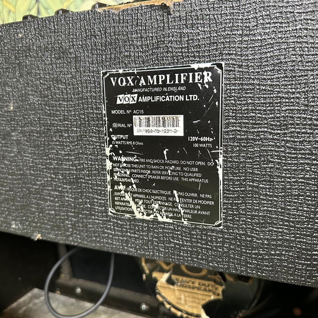 This particular Vox AC15TB was produced by Marshall under contract to Vox in 1998 and manufactured in England, Vox's motherland! This snazzy combo features a 15 watt class "A" power amplifier section and a single channel preamp with reverb, tremolo and "Top Boost" tone controls. All of this British flavor is pumped through the original 12 inch Vox Bulldog speaker by Eminence!