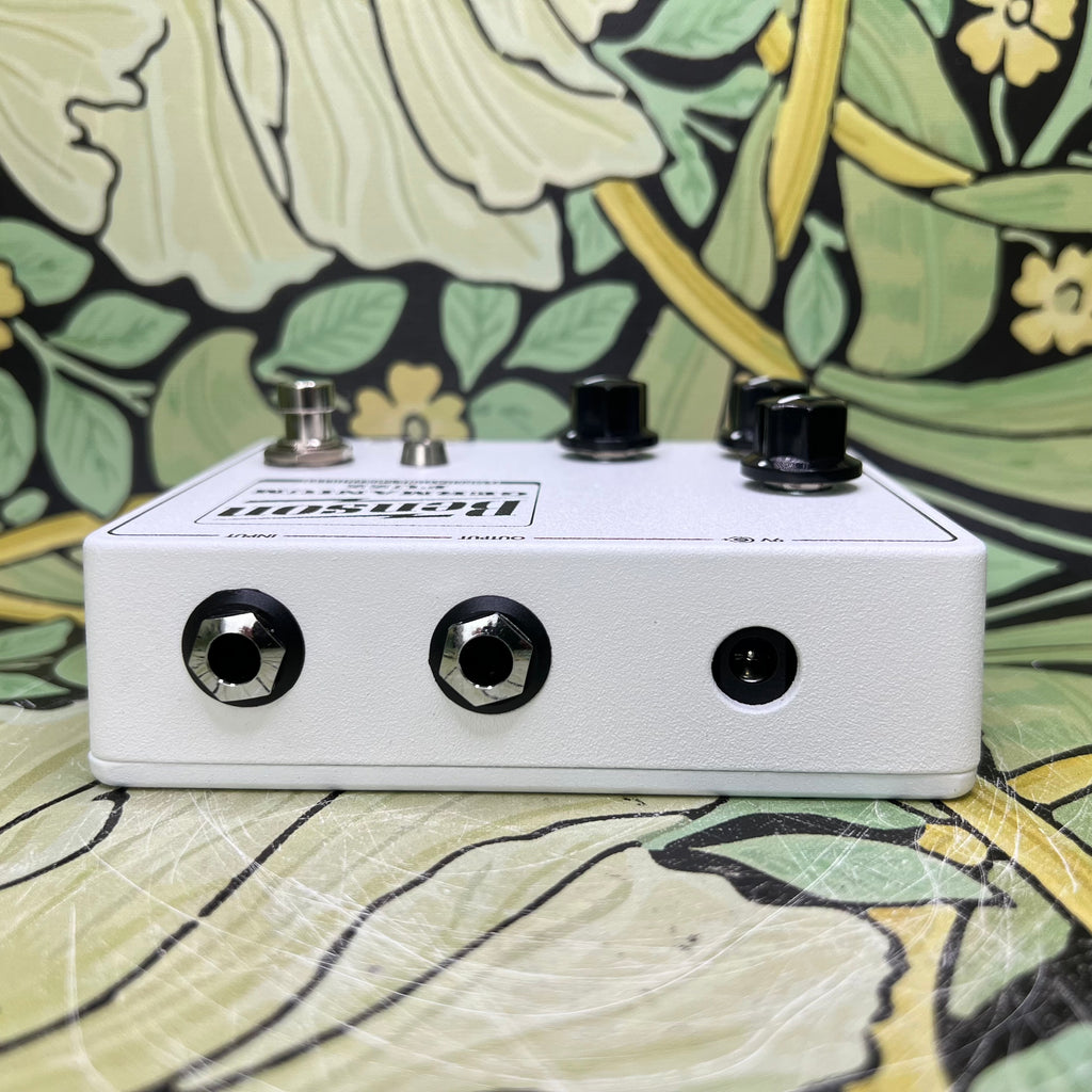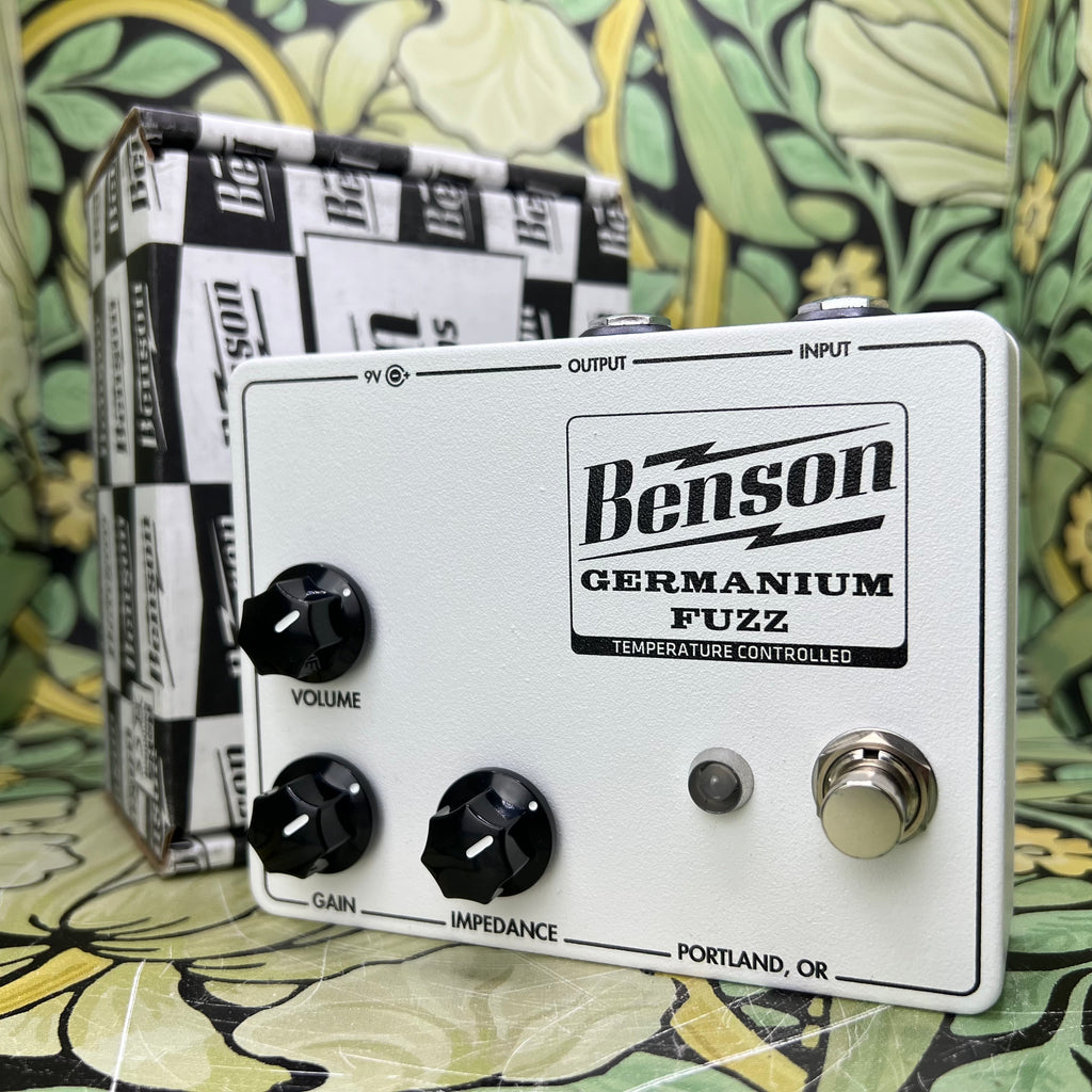 We installed a class A buffer in the very input of the Germanium Fuzz. This buffer feeds a Jack Orman style passive pickup simulator circuit (an audio transformer set up as an inductor, a resistor, and a capacitor). These two additions make compatibility with other pedals possible without losing the desired sound. After the pickup simulator circuit, we have added an “Impedance” control, which simulates rolling down the guitar volume to get that tight sparkly sound…without adjusting your guitar volume….which you can still do and still sounds great.