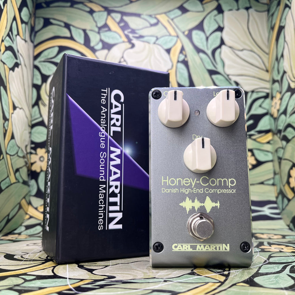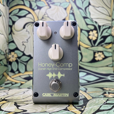The Carl Martin Honey Comp incorporates the special CM developed DC/DC converter circuitry. This enables us to run the pedal with +-12V internally, which is necessary, in order to maintain the same sonic quality and headroom as on the “old” Compressor/Limiter, using a regular 9V DC 200mA external power supply.