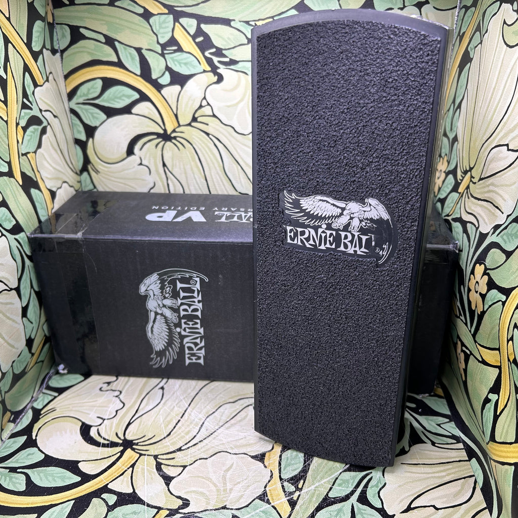 Since its introduction in 1977, the Ernie Ball Volume Pedal has been the leading choice for musicians across the globe. The Ernie Ball 40th Anniversary VP Pedal features a luxurious limited edition slate black aluminum chassis with updated graphics for a striking appearance both on and off stage. A redesigned ultra durable Kevlar cord improves potentiometer traction for precise volume control and a super smooth foot sweep. Inspired by the rugged design of the original, the pedal's compact extruded aluminum housing is virtually indestructible. Celebrate 40 years of quality, performance, and reliability with this new anniversary edition volume pedal only from Ernie Ball.