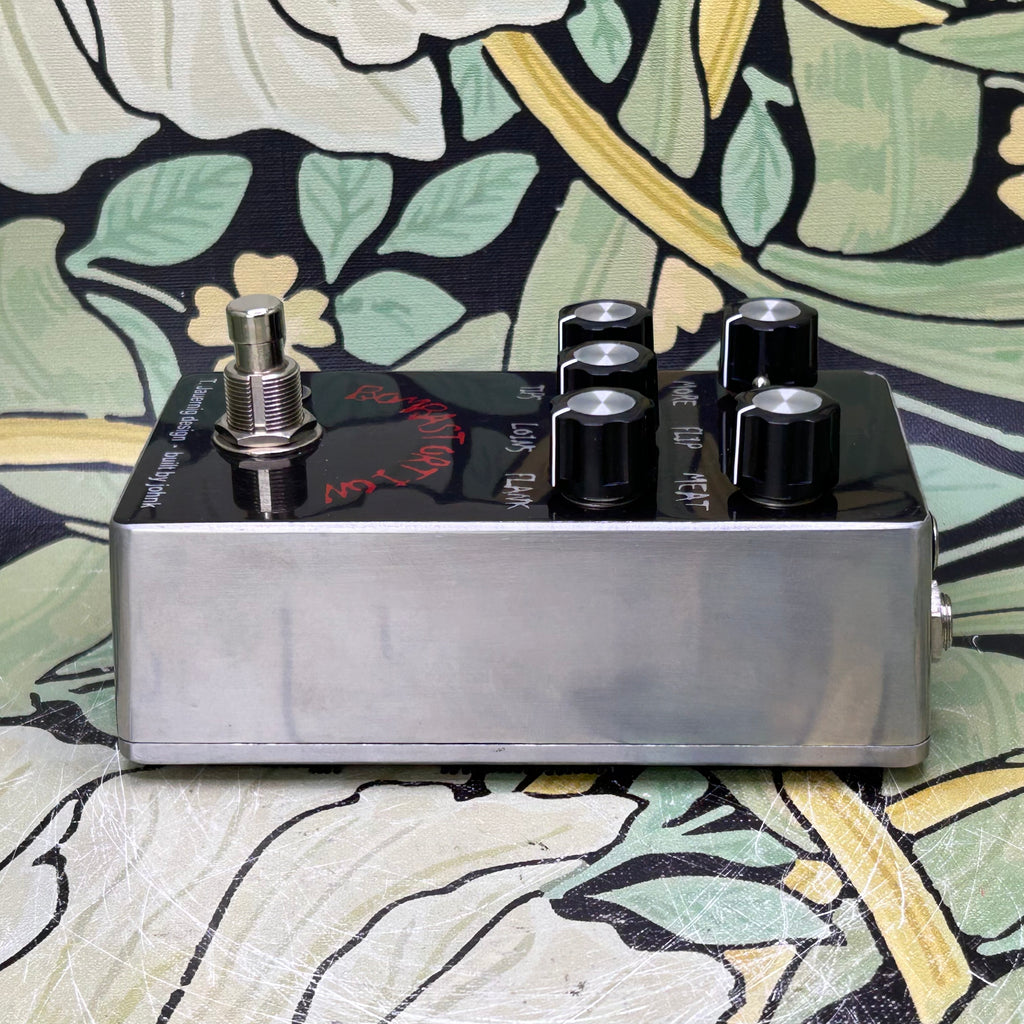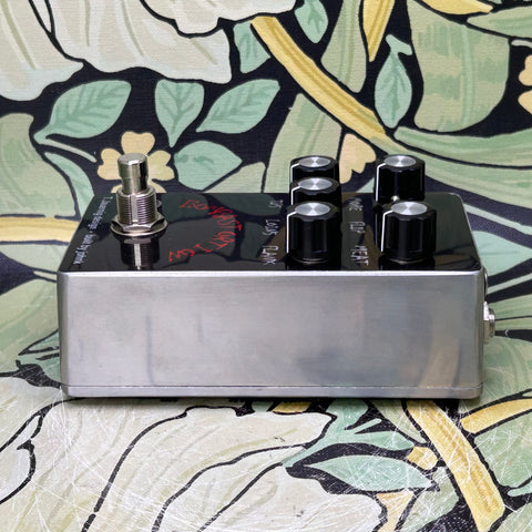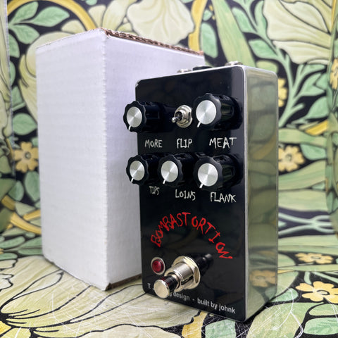 The distortion pedal features a toggle switch to select between guitar or bass modes, as well as a 3-band EQ section, making this an incredibly versatile dirt box for any stringed instrument. JohnK has since discontinued building these pedals, so they're getting harder and harder to find nowadays.