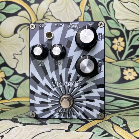 The Mantic Vitriol distortion: variable high-gain distortion with low and high pass filters capable of gyrator-based frequency boost.