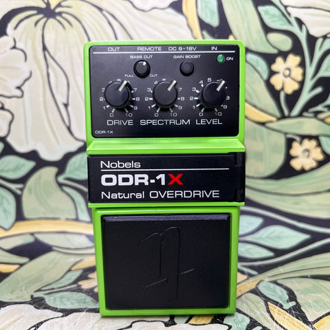 The ODR-1X is a natural-sounding dirtbox that carves its niche among "green pedal" variations. This aggressive mid-forward pedal boasts a 5-knob control set, an upgrade over previous iterations. The familiar Level, Drive, and Spectrum knobs adorn the front; however, smaller Bass Cut and Gain Boost knobs add to your range of control, with the Bass Cut providing a low-end sweep and the Gain Boost offering up to 27dB of extra gain. Nobels has also added a selectable bypass, allowing you to choose between the traditional buffered bypass or true bypass operation. All these additions come without the sacrifice of the remote input jack, the 18-volt power compatibility, or the glow-in-the-dark knobs of the previous model.