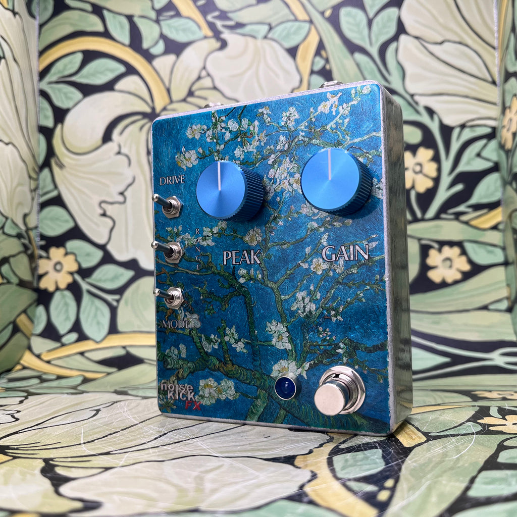 The noiseKICK FX Almond Blossom takes the elusive vintage circuit and brings it into the 21st century with a few modern conveniences. This handmade pedal is built to capture the original tone of a Mu-Tron III. Requires a sing 9v plug (standard center negative) but still runs at 18volts, just like the original Mu-Tron, thanks to the build in charge pump. This pedal is wired for true bypass and features 2 knob controls: Peak and Gain with 3 toggle switches: range, mode (high pass, low pass, band pass), and drive (up/down).