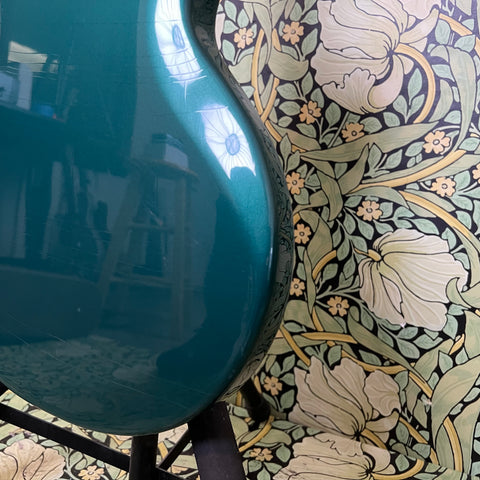 This guitar looks incredible for its age, with the help of an excellent refinish in gorgeous Inverness green and a refret, both previously done at Guitar Mill in Murfreesboro, TN. Our expert in-house luthiers gave this guitar the full spa treatment with a fret polish and setup, ensuring it's ready for any stage or studio.
