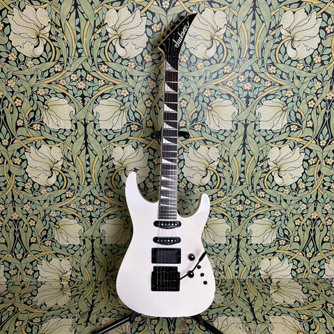 For electronics, this bad boy is loaded up with a super hot EMG 81-B active humbucker in the bridge with an output rating of 25.5k, and the original Jackson J-100 single coil pickups with output ratings of 6.24k in the neck and 6.20 in the middle.