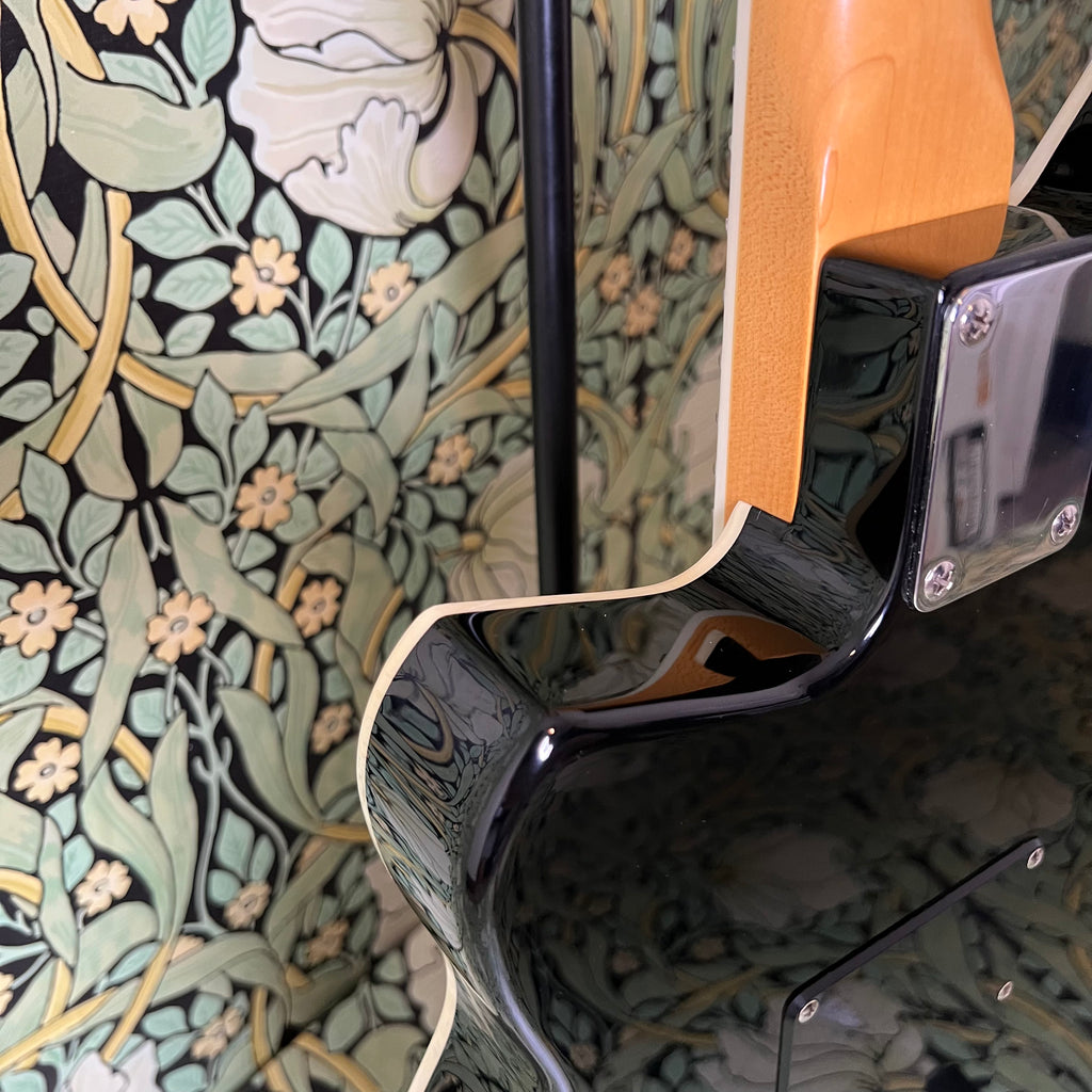 The stock single coil pickups (5.47k N, 5.3k M, 7.26k B) offer a wide range of tone from beefy early 50’s twang to buttery warmth.