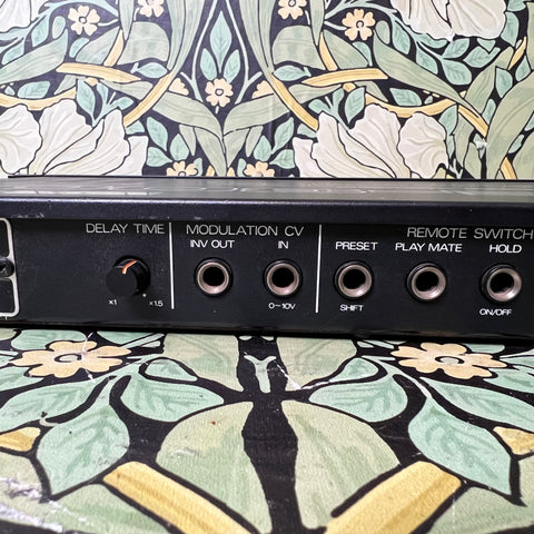 - Jacks for connecting a footswitch to control delay on/off, hold, and preset shifting