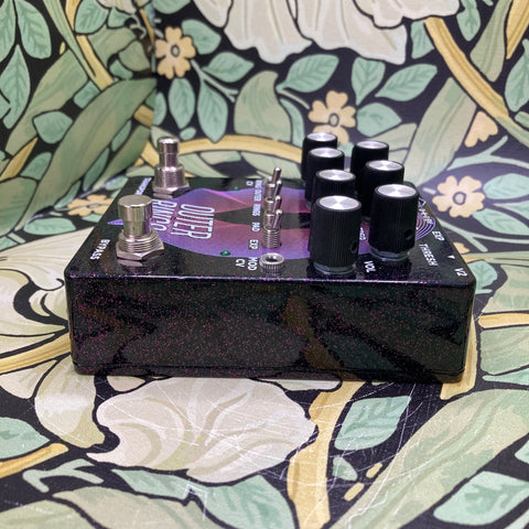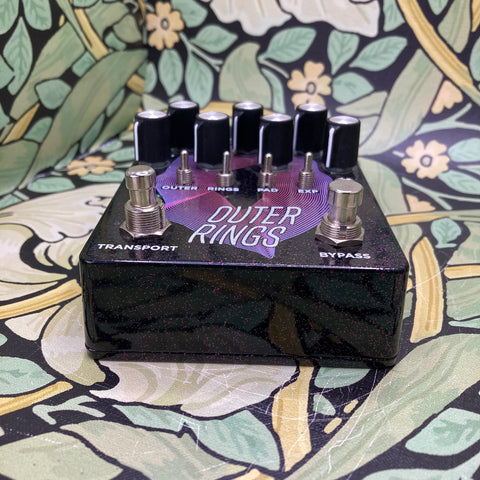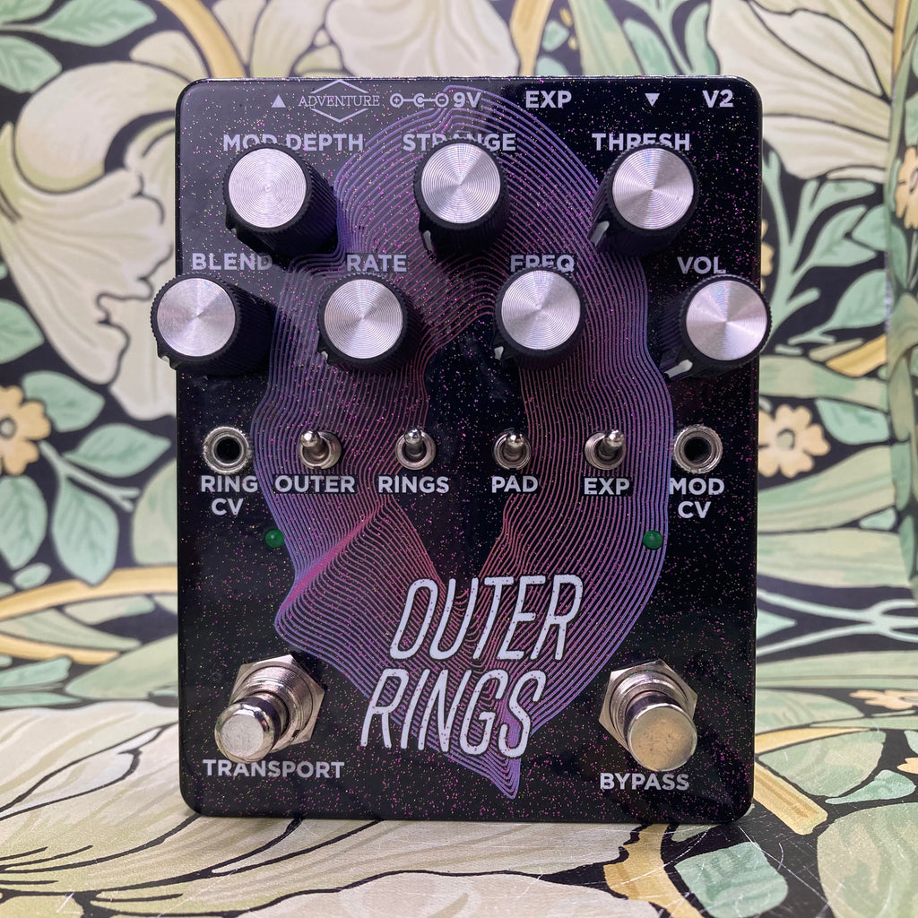 The Outer Rings is a synth effect from Adventure Audio that promises out-of-this-world tones. It works by multiplying the input signal with an internal square wave oscillator, which then creates a square wave with harmonic energy related to the harmonic content of your input signal and oscillator. Players can then add that multiplied signal back with post-gain signal for even more ethereal modulation.