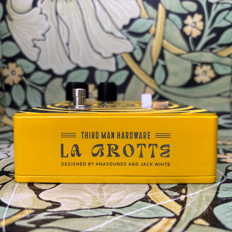 La Grotte is the new analog spring reverb by Anasounds for Third Man Hardware, designed in close collaboration with Jack White. It is a mechanical reverb with an integrated three-spring tank, but there is also a very warm preamp with a strong character, and an ultra-effective two-band EQ (which only affects the reverb itself). Separate volume controls for direct sound and reverb sound give you access to the ideal mix you've always been looking for. Whatever your sound aesthetic may be, vintage or modern, blues or pop, garage or soul, you'll get that tone with this reverb.