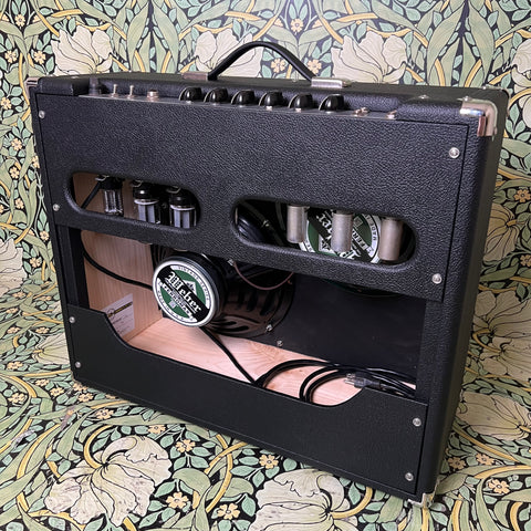 The brain of this sweet little combo is a '59 tweed Bassman circuit featuring fully housed in a familiar tweed low power Twin style cabinet. Though built to spec, this Bassman features modernized parts and specs to make it a super sturdy, ultra reliable studio and gigging machine. Pushing out all of the amps kick ass tone is a pair of Weber speakers. One with Oxford style voicing and the other with Jensen voicing to give you a snappy vintage sound with a full bottom end for all them bass frequencies. Best part of it all? This thing isn't breaking the bank or your back!