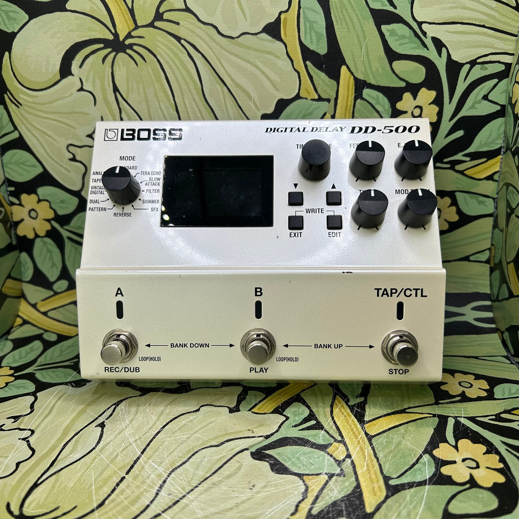 Packed with twelve distinctive, fully editable delay modes, the BOSS DD-500 digital delay pedal provides you with unlimited creative possibilities. The DD-500 also gives you a graphic display that's incredibly easy to follow while performing and editing, onboard patch memories for storing your favorite effect configurations, a phrase looper for creating mind-blowing layered performances, and customizable control settings for real-time expression that's second-to-none. And with 32-bit/96kHz processing throughout, you can expect studio-level sound every time you stomp on the DD-500.