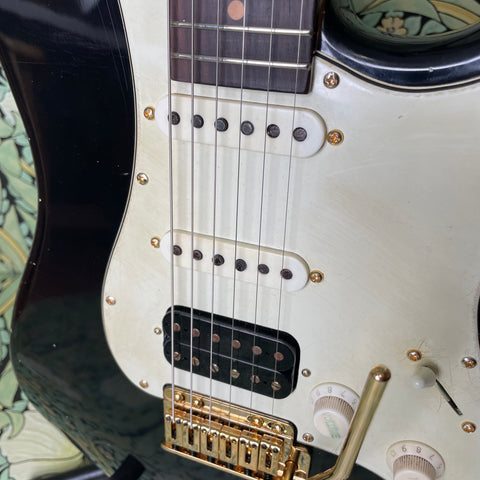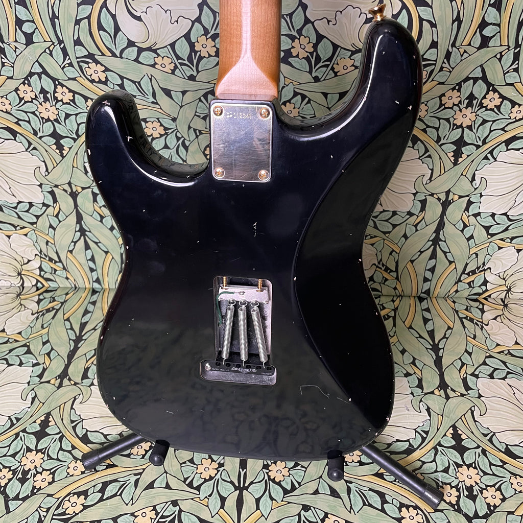 This strat-style guitar has a speed neck for ease of riffing, and is sure to turn heads when you grace the stage with it. It can shred with the best of them, and has even received a fresh setup from one of our badass luthiers, so you know it's ready for stage or studio. This model is #41 of the Cervantes Custom production line.