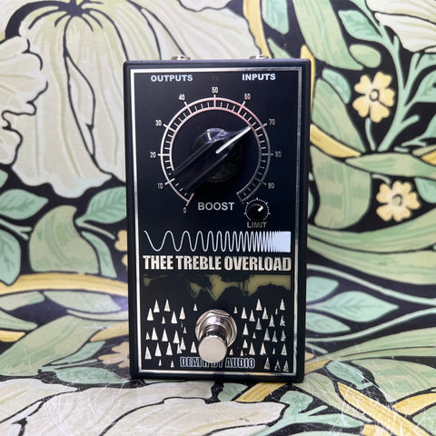 Thee Treble Overload is dual mono, meaning it can process stereo chains, perfect for blasting your stereo reverbs, choruses, delays, keyboards, or drum machines straight into overdrive.