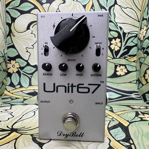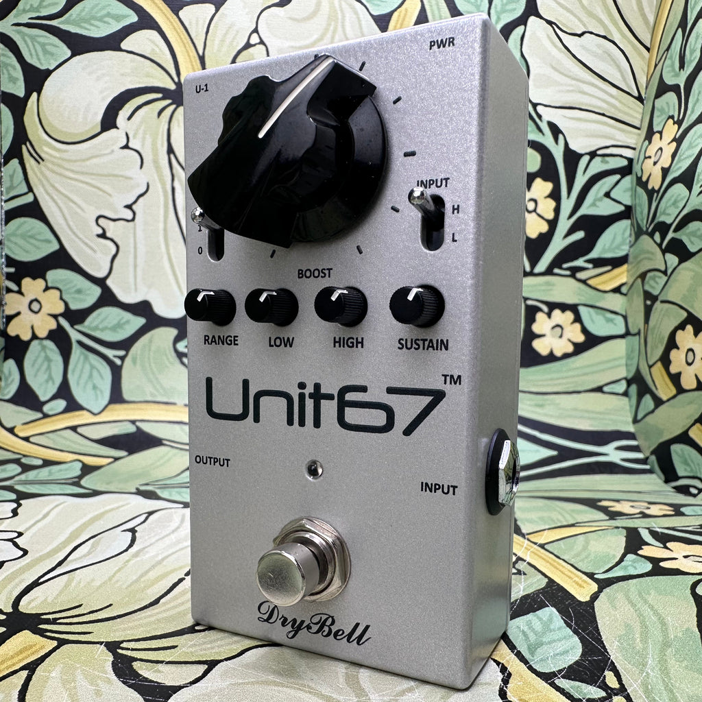 The Unit67 is a compact and fully analog device that has a highly versatile EQ set including a "Rangemaster-like" mid control, a boost and an 1176 type of compressor – all in one extremely practical guitar pedal. When DryBell started working on this pedal, they wanted it to be as unique as possible in today’s pedal world and that was no easy task. Imagine getting THAT sound you have in your head from just one pedal.