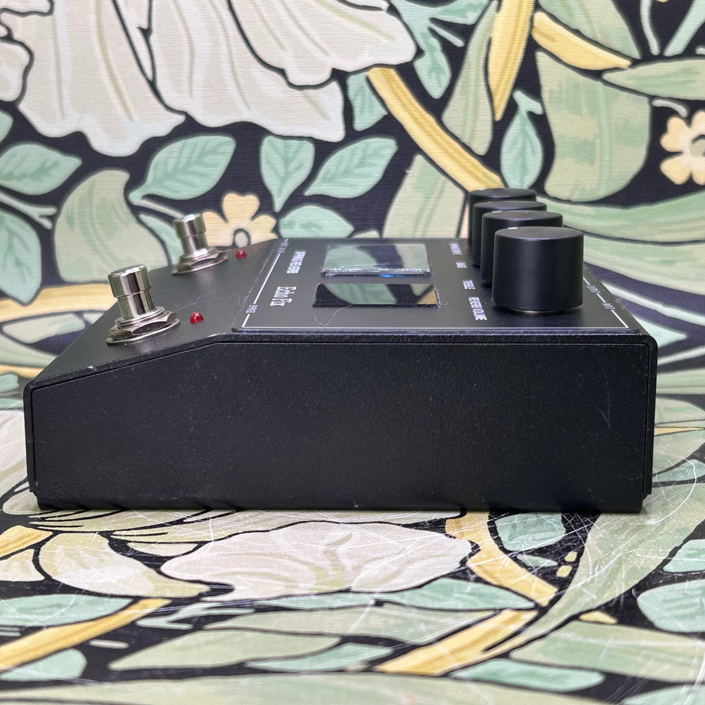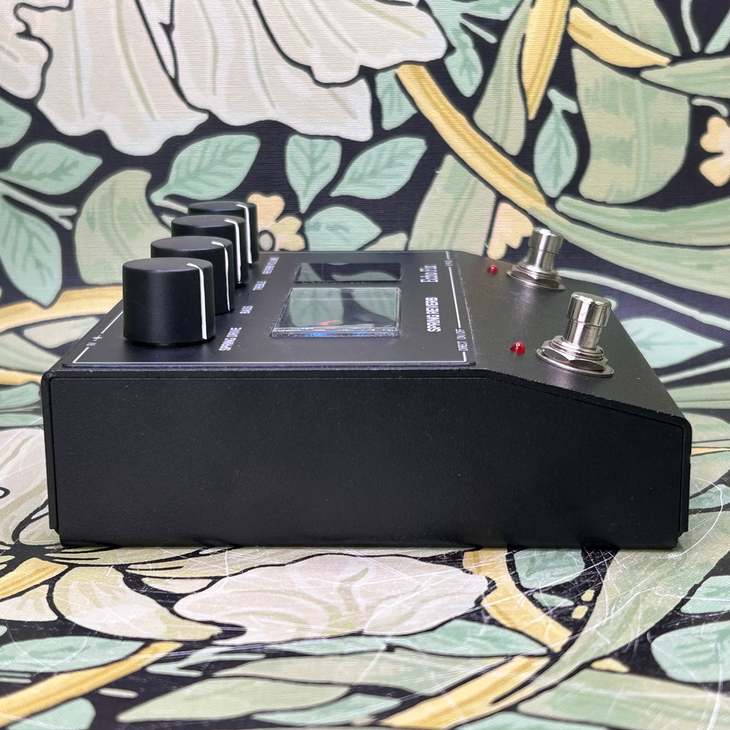 The Echo Fix EF-P2 is a real Spring Reverb pedal that packs a huge sound into a small enclosure. The EF-P2 features a three-spring reverb tank, adjustable Spring Drive, Bass / Treble EQ controls, and Reverb Volume control. With a footswitch for reverb bypass and also a direct signal mute footswitch, the EF-P2 can also be used as an outboard effect in recording studios. With increased voltage rails for studio use, the EF-P2 can accept line level inputs from synths and other audio devices, not just guitar.