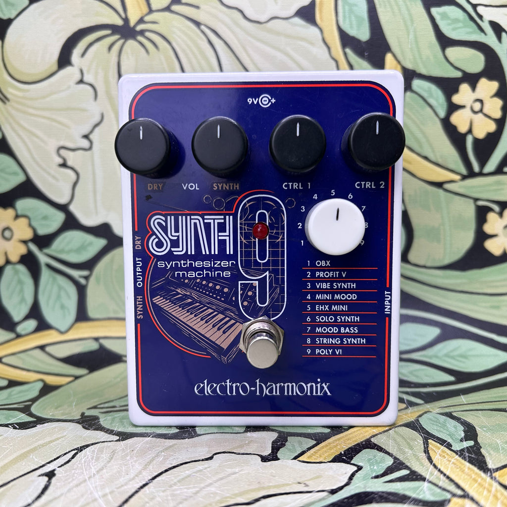 1. The SYNTH9 is generally best used as the first pedal in an effects chain. Place modulation, delay, and reverb effects after the SYNTH9. The unit will not perform well if placed in the effects loop of a guitar amp.