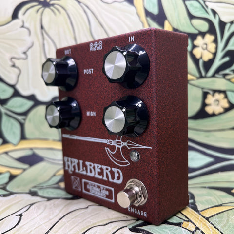 Originally released in 2019, the V1 features NOS germanium transistors. The Halberd is a discrete transistor overdrive circuit designed for the greatest possible dynamic range and note clarity. It fills a special niche our family of drive pedals—a medium-gain device with the harmonic fullness and grind of a much higher-gain pedal, one that stands apart from both the brazen buzz of op amp distortion and the smooth breakup of JFET amp emulations alike.