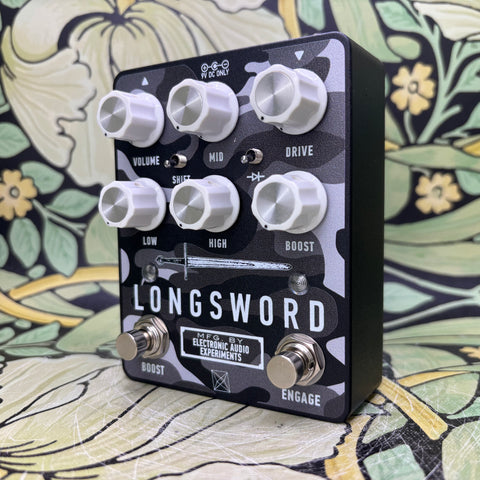 the longsword from our dear friends at electronic audio experiments is an absolute monster of a dirt box. at risk of sounding like "yeah dad, ya told us." this op-amp based drive machine can do everything from clean boost to massive wall of sound distortion. it's become very normal to see this staple on many different rigs. bass, guitar, baritone, extended range, 8/9 strings, etc... it's power is in it's flexibilty and it's meticulously crafted eq section.