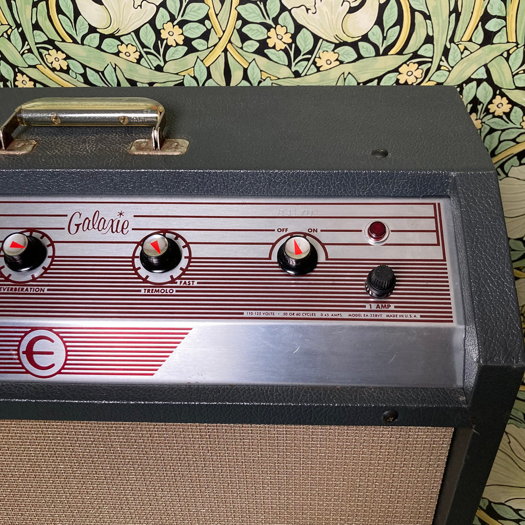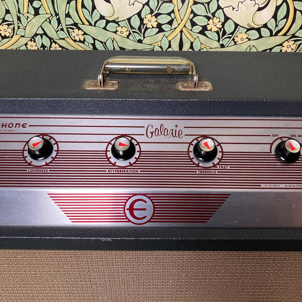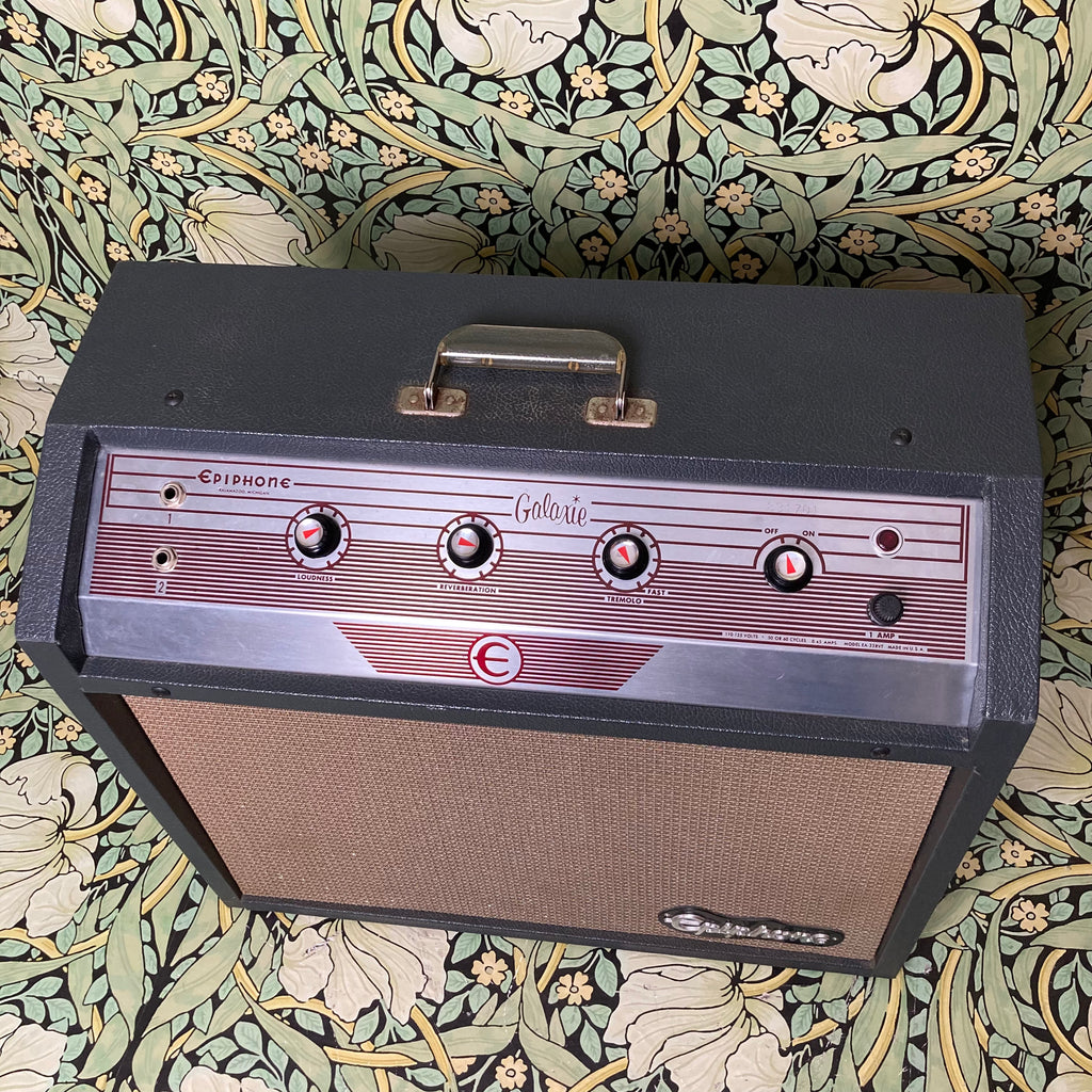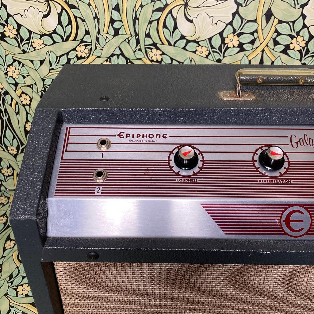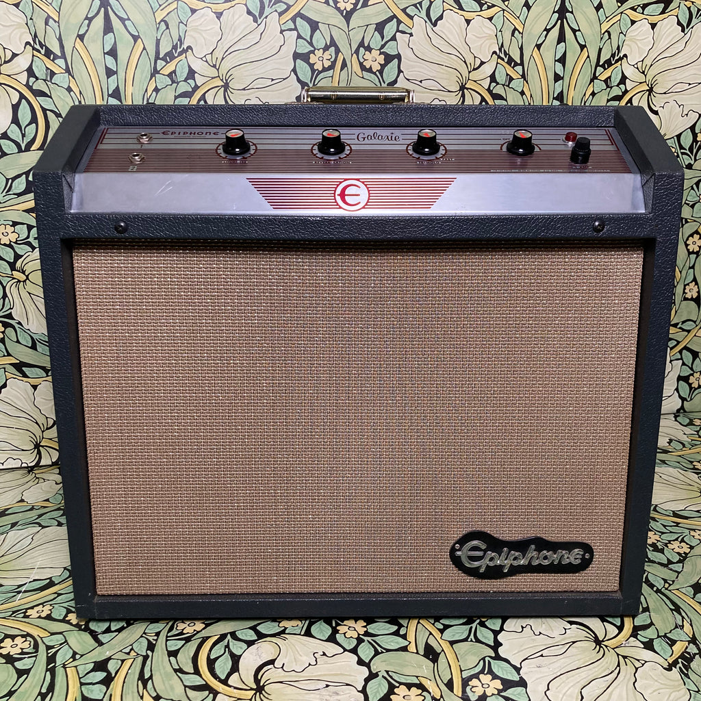 The Epiphone Galaxie is almost identical in circuitry to the Gibson Scout and produces a darker, rich, full-bodied tone with plenty of clean headroom. It features 17W of warm punchy tone from a pair of 6BQ5 power tubes and a simple control setup with knobs for loudness, reverberation, and tremolo.