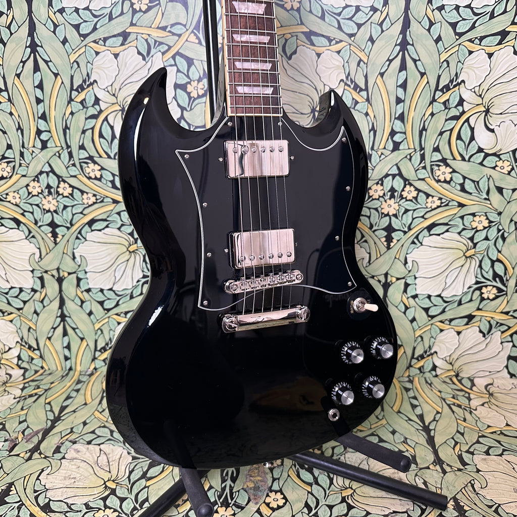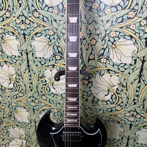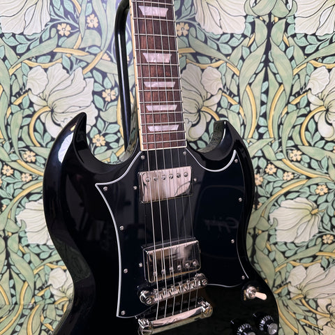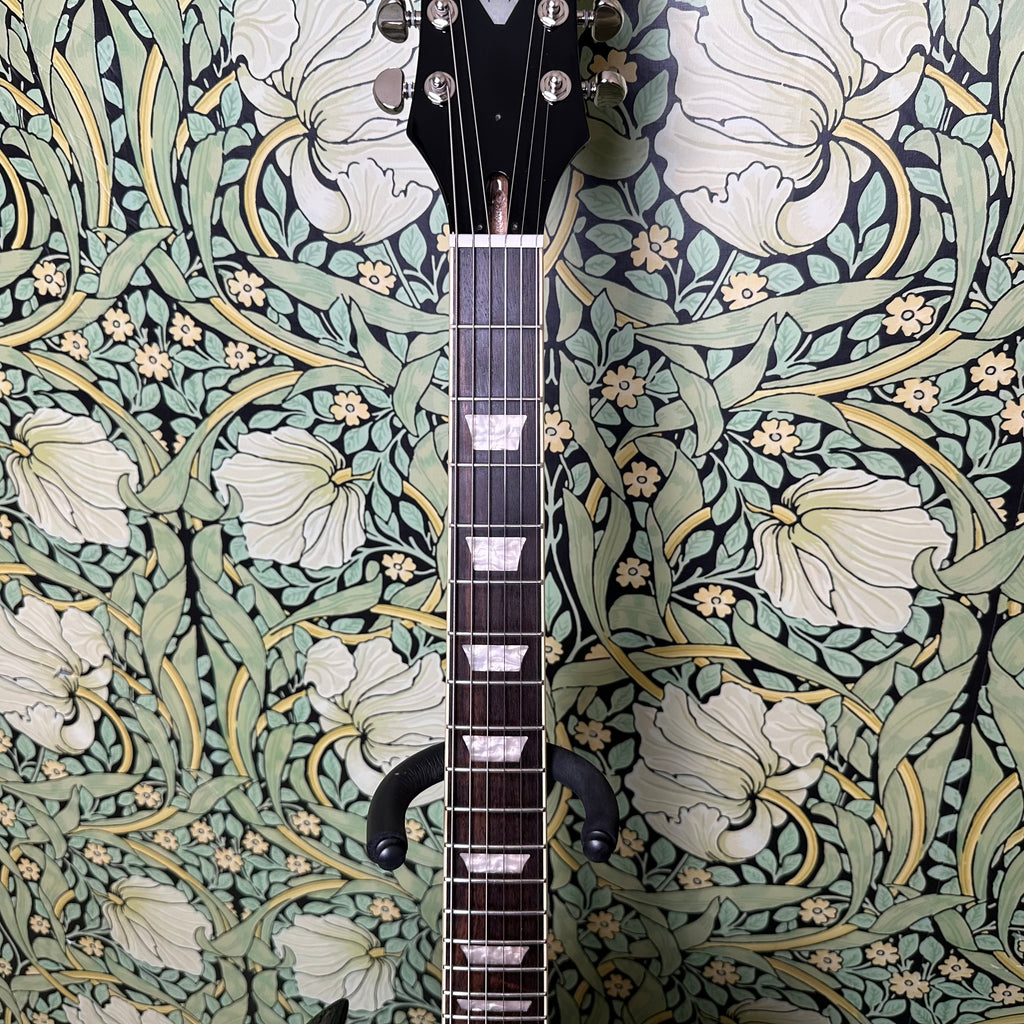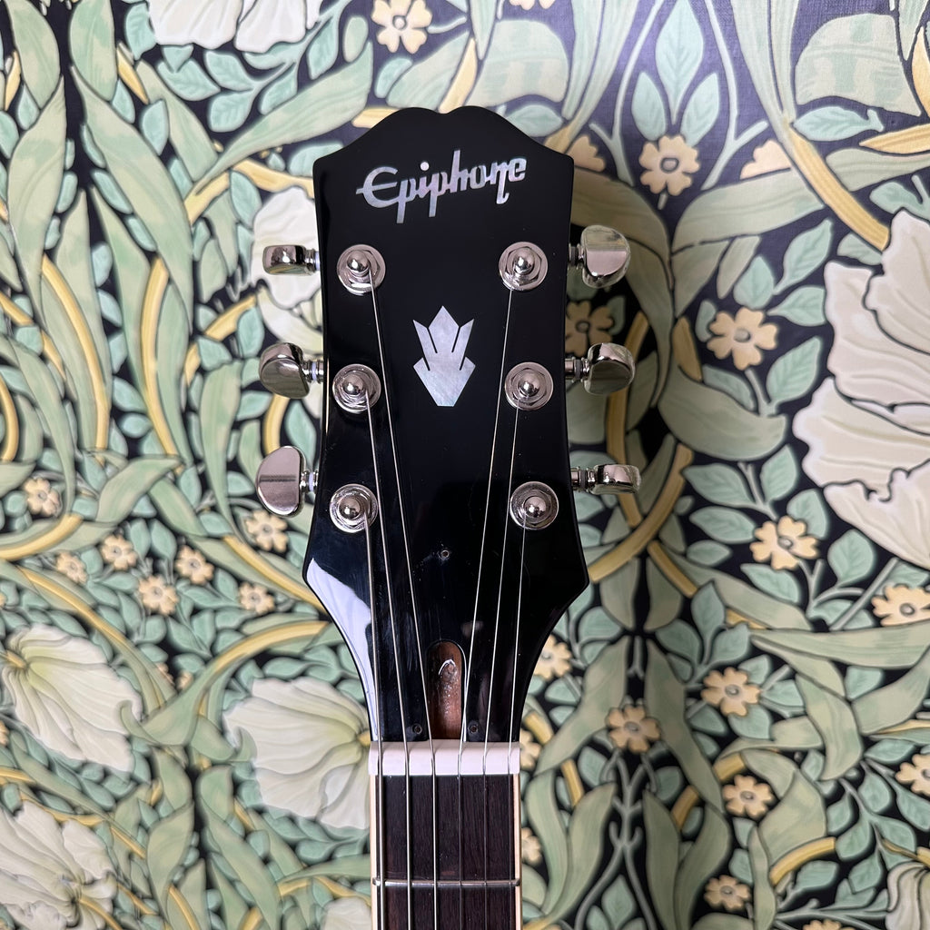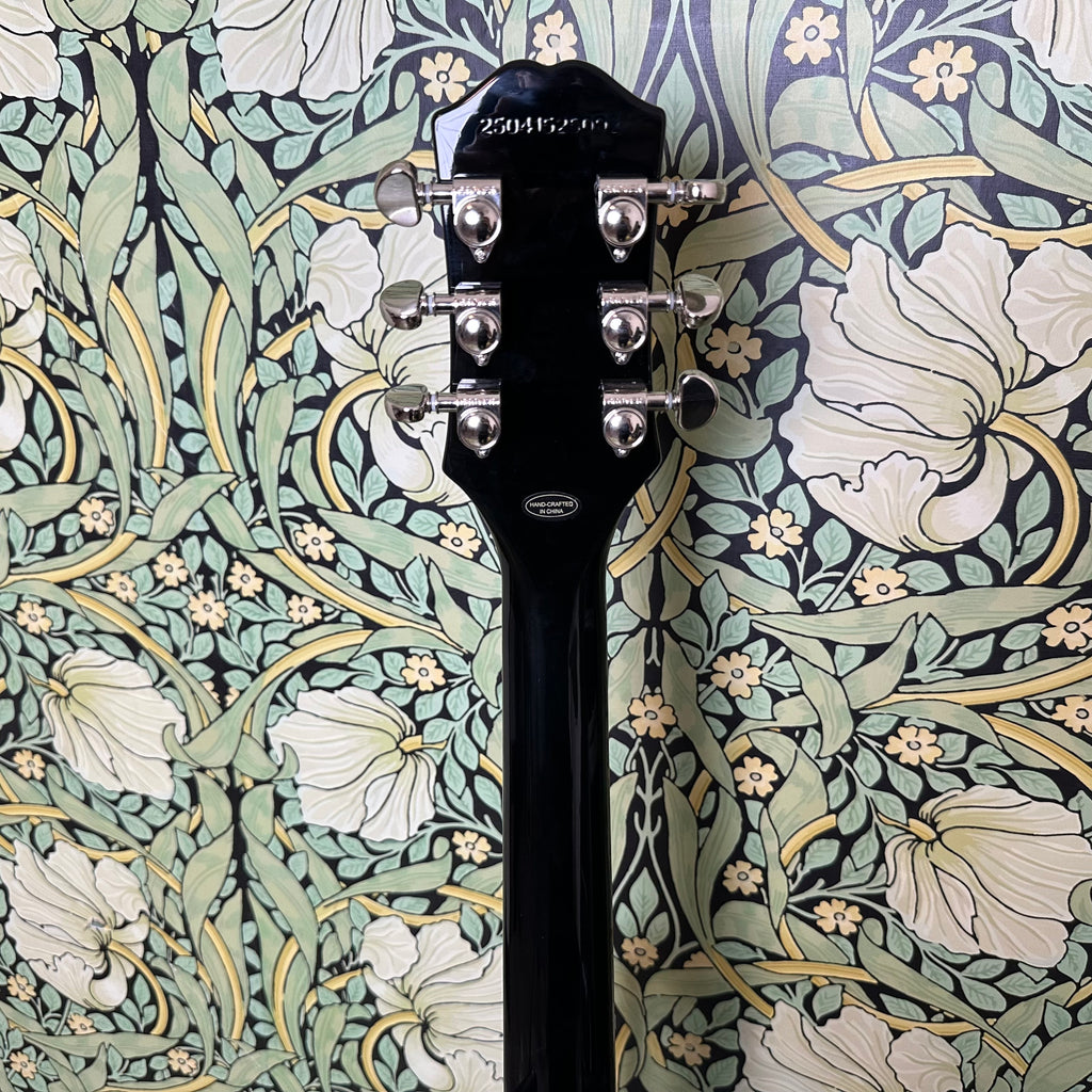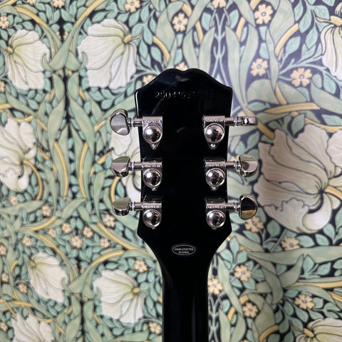 Electronics include the classic layout of 2 volume, 2 tone knobs and 3 way select switch and comes loaded with a pair of stock Epi Probuckers (N: 7.86k, B: 8.51k) that give you that classic punchy sound.