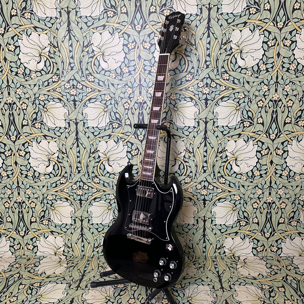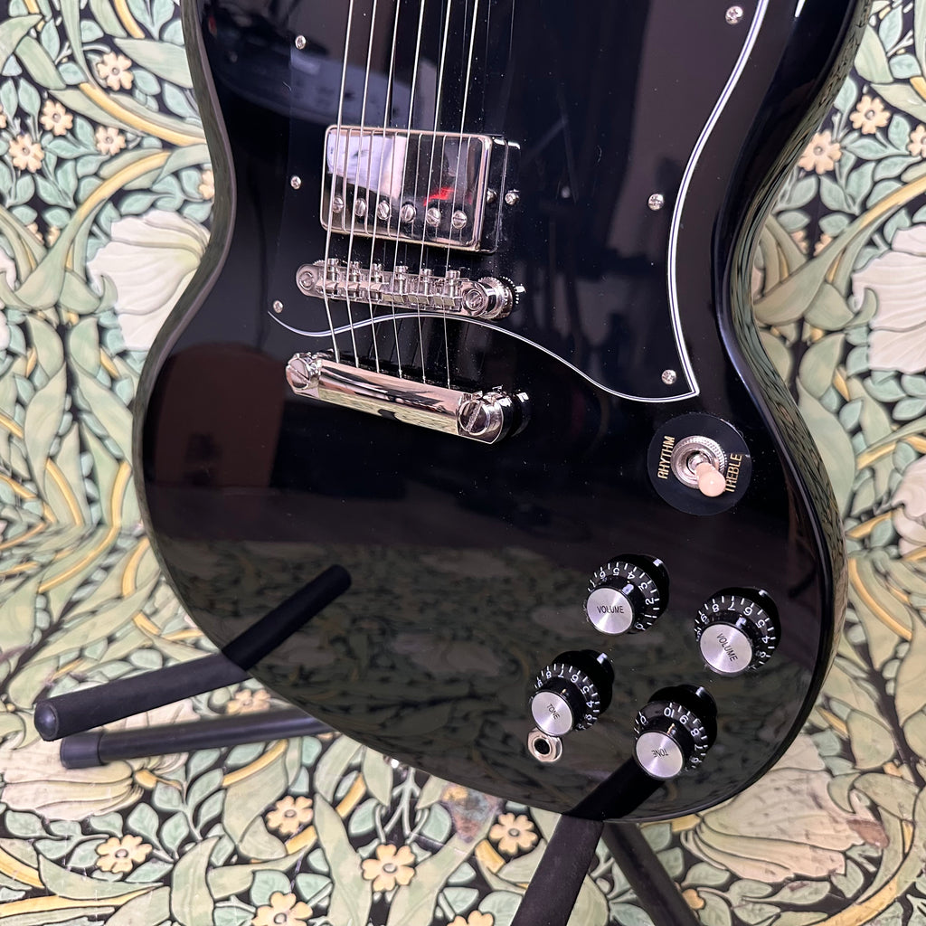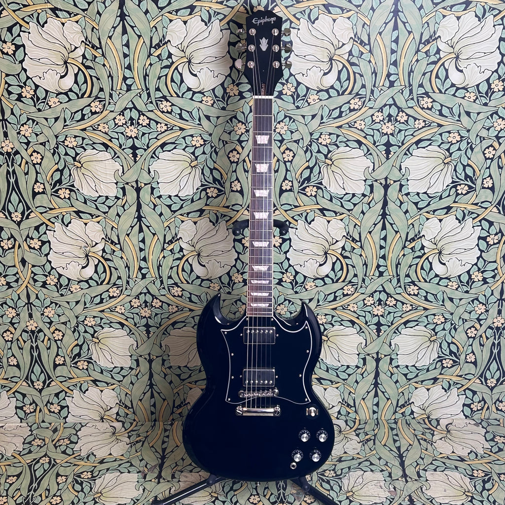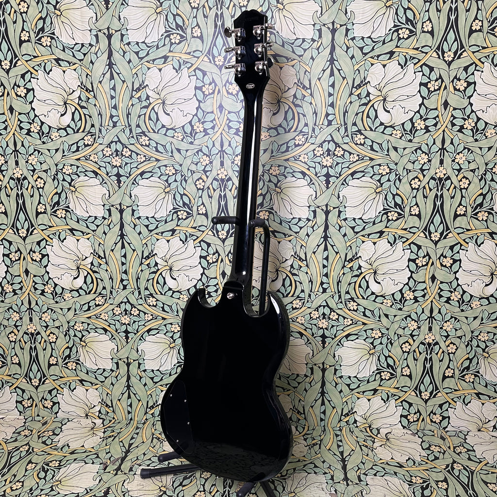 Electronics include the classic layout of 2 volume, 2 tone knobs and 3 way select switch and comes loaded with a pair of stock Epi Probuckers (N: 7.86k, B: 8.51k) that give you that classic punchy sound.