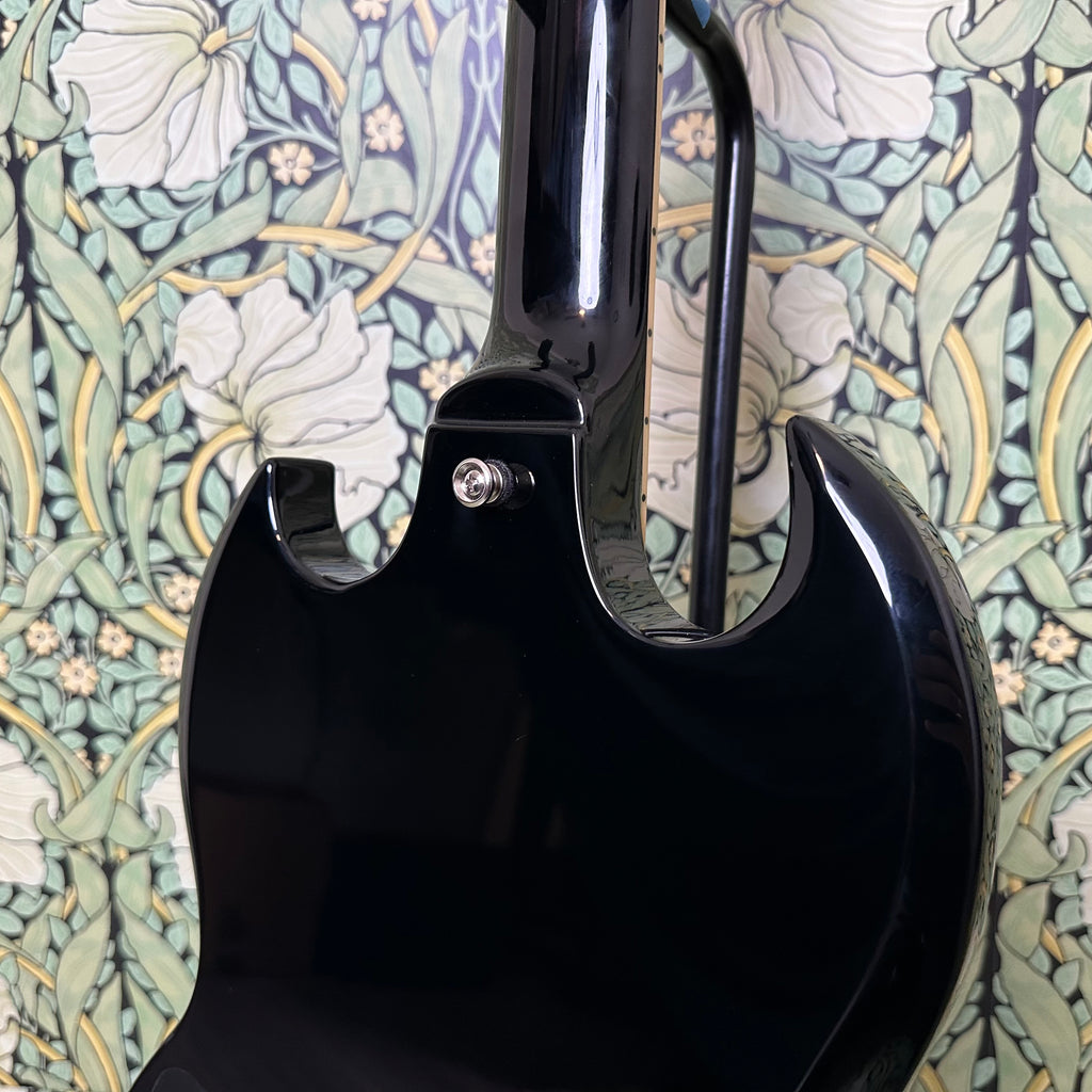 At 6.82 lbs, the toneful mahogany body and slim C-profile neck (.795-.880) with 1.685" nut and rosewood fingerboard (12" radius, typical of most Gibbies/Epis!) feels and plays like an absolute dream.