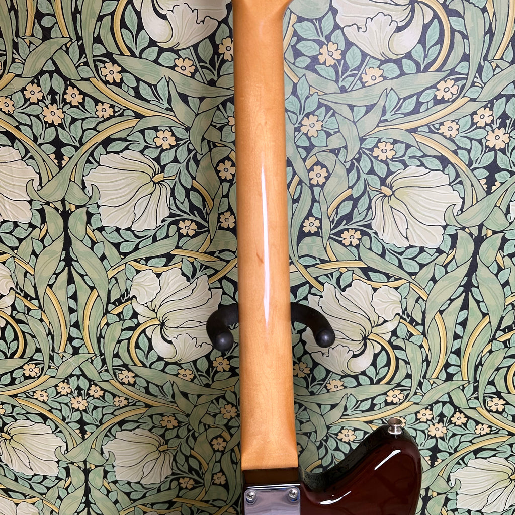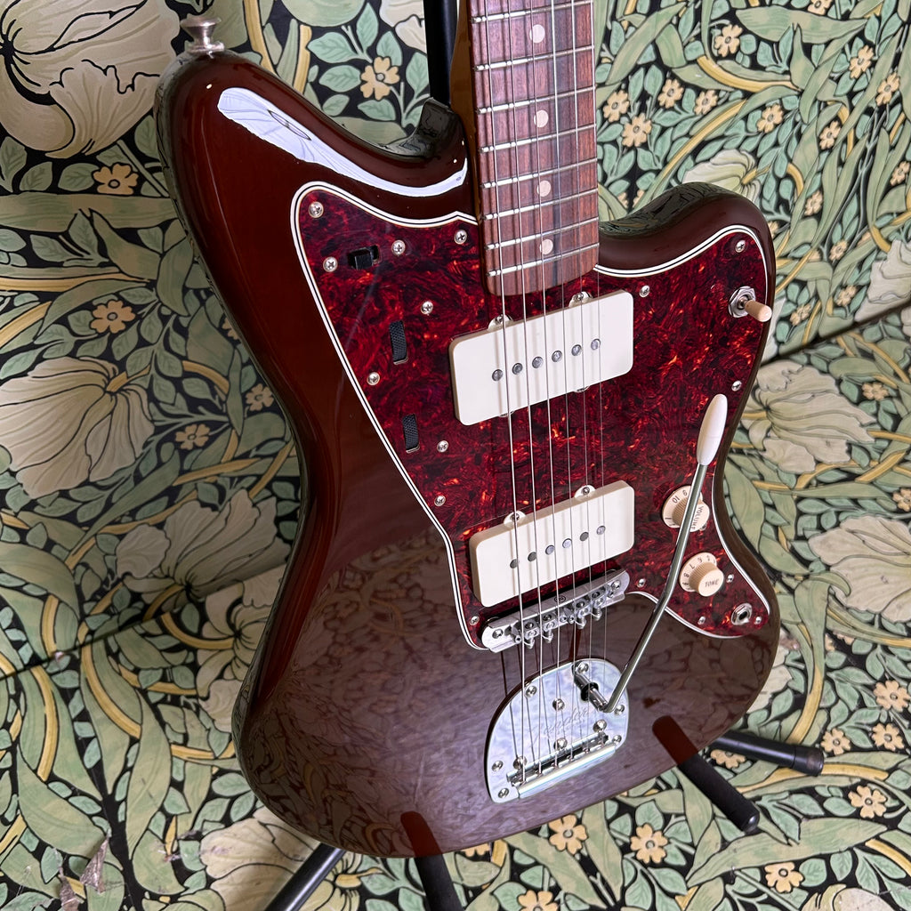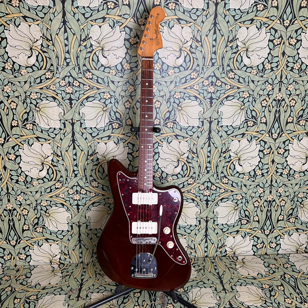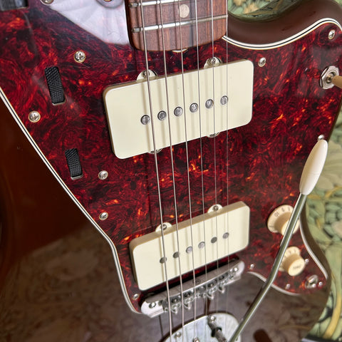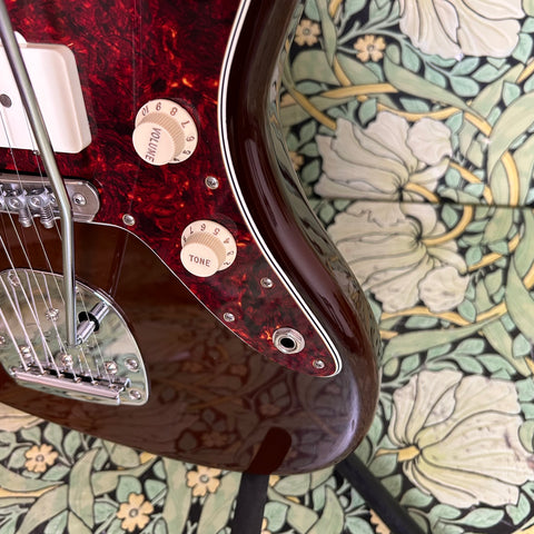 The Factory Special Run Jazzmaster is the perfect meeting place of vintage reissue-level quality and kickass player grade guitar. This super clean offset in rare walnut finish is as good as it gets! Crafted from alder with a maple/pau ferro neck and board (modern C, 7.25" radius), it has a great balance and really comfortable neck (.855"-.919"). And it weighs in at 8 lbs. The stock pickups (6.60k neck, 7.75k bridge) have all the tight, percussive and warm tones (and even a bit of jingle jangle) that we all want from a Jazzmaster.