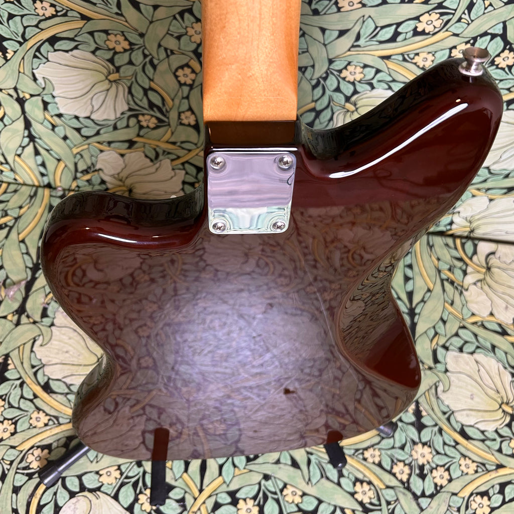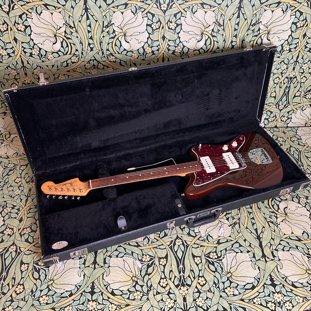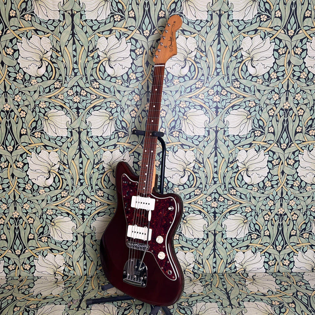 The Factory Special Run Jazzmaster is the perfect meeting place of vintage reissue-level quality and kickass player grade guitar. This super clean offset in rare walnut finish is as good as it gets! Crafted from alder with a maple/pau ferro neck and board (modern C, 7.25" radius), it has a great balance and really comfortable neck (.855"-.919"). And it weighs in at 8 lbs. The stock pickups (6.60k neck, 7.75k bridge) have all the tight, percussive and warm tones (and even a bit of jingle jangle) that we all want from a Jazzmaster.