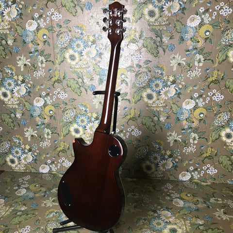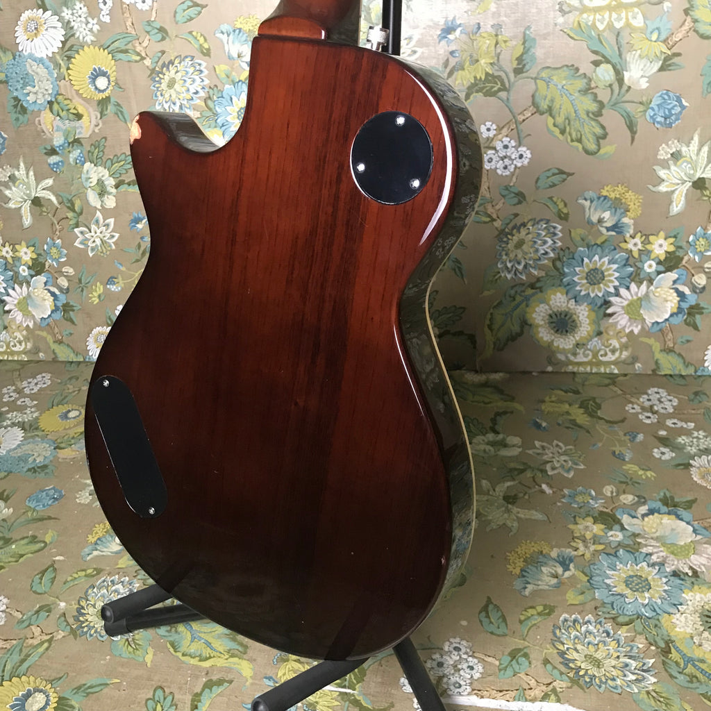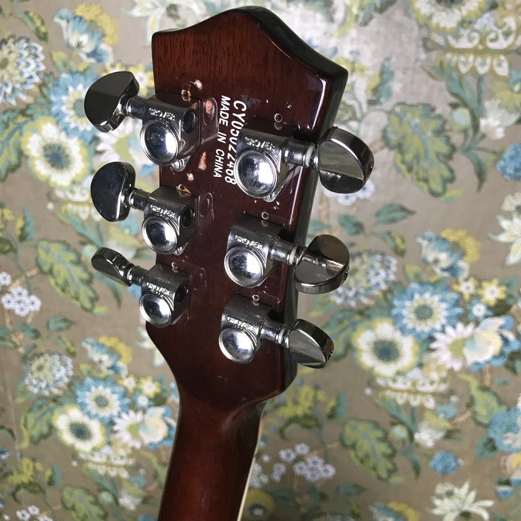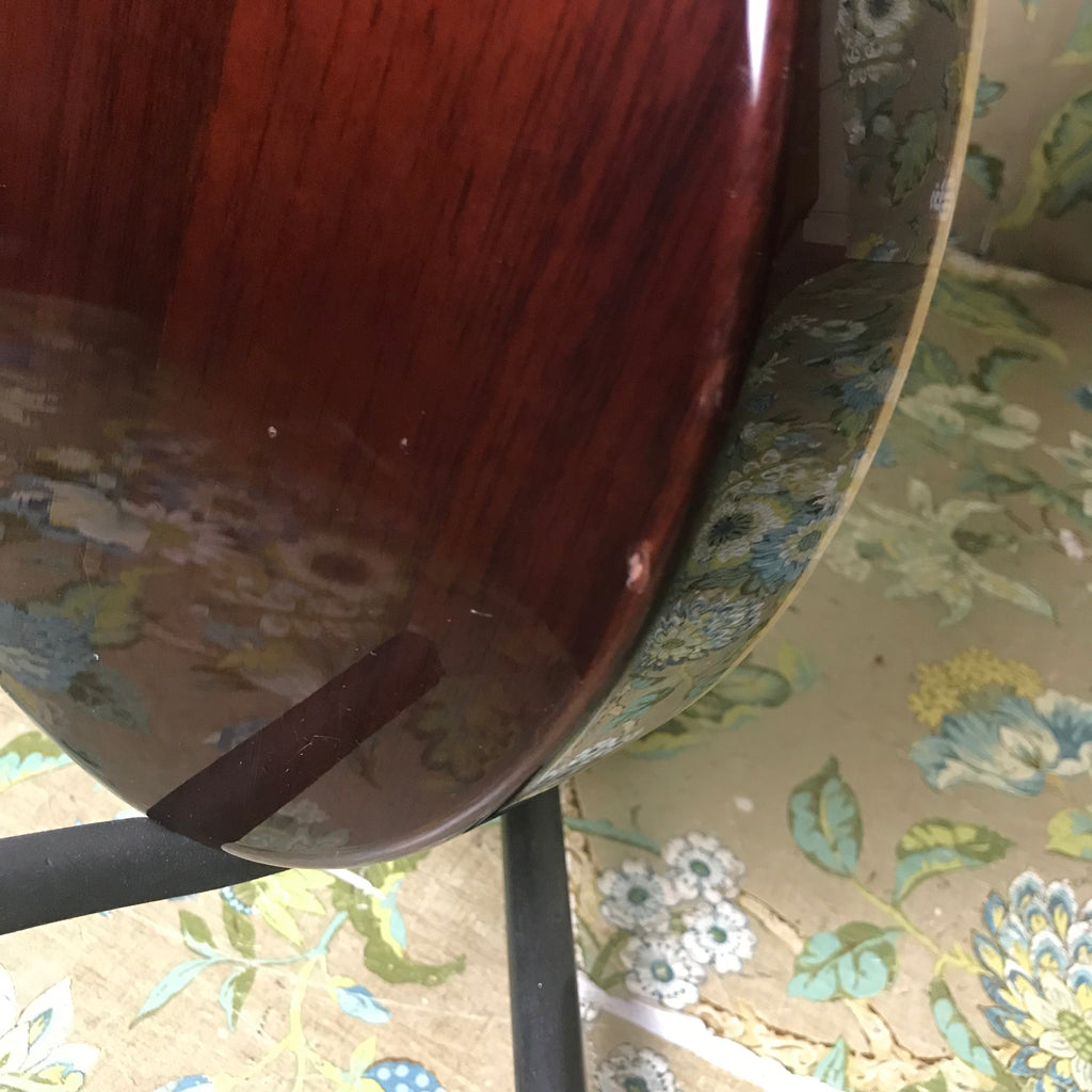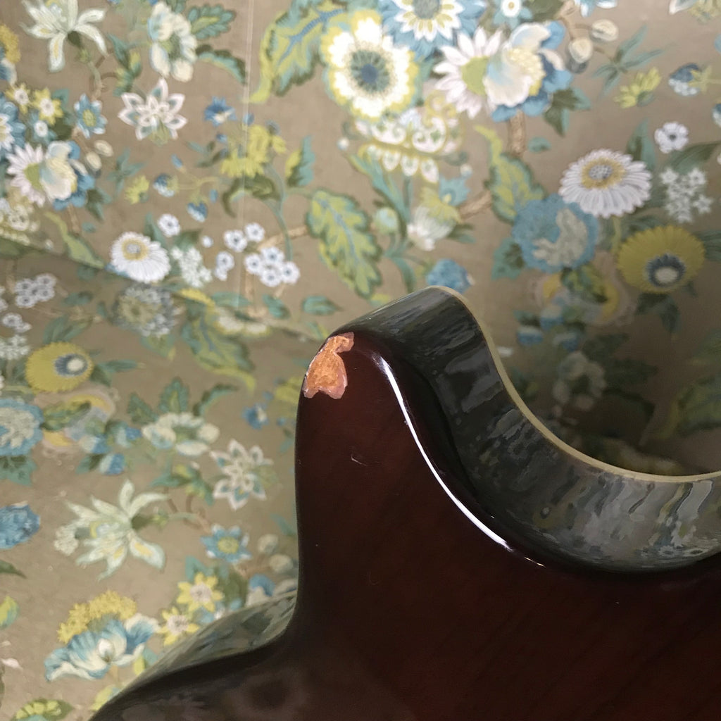 This one has some signs of love and use and battle scars. The sparkly pickguard has been professionally modified (by our techs) to fit the Filtertron rings. But none of this detracts from how stunning and playable  this guitar is. The top shelf techs here at EMS have given it a full setup and it will arrive to you ready for stage or studio.