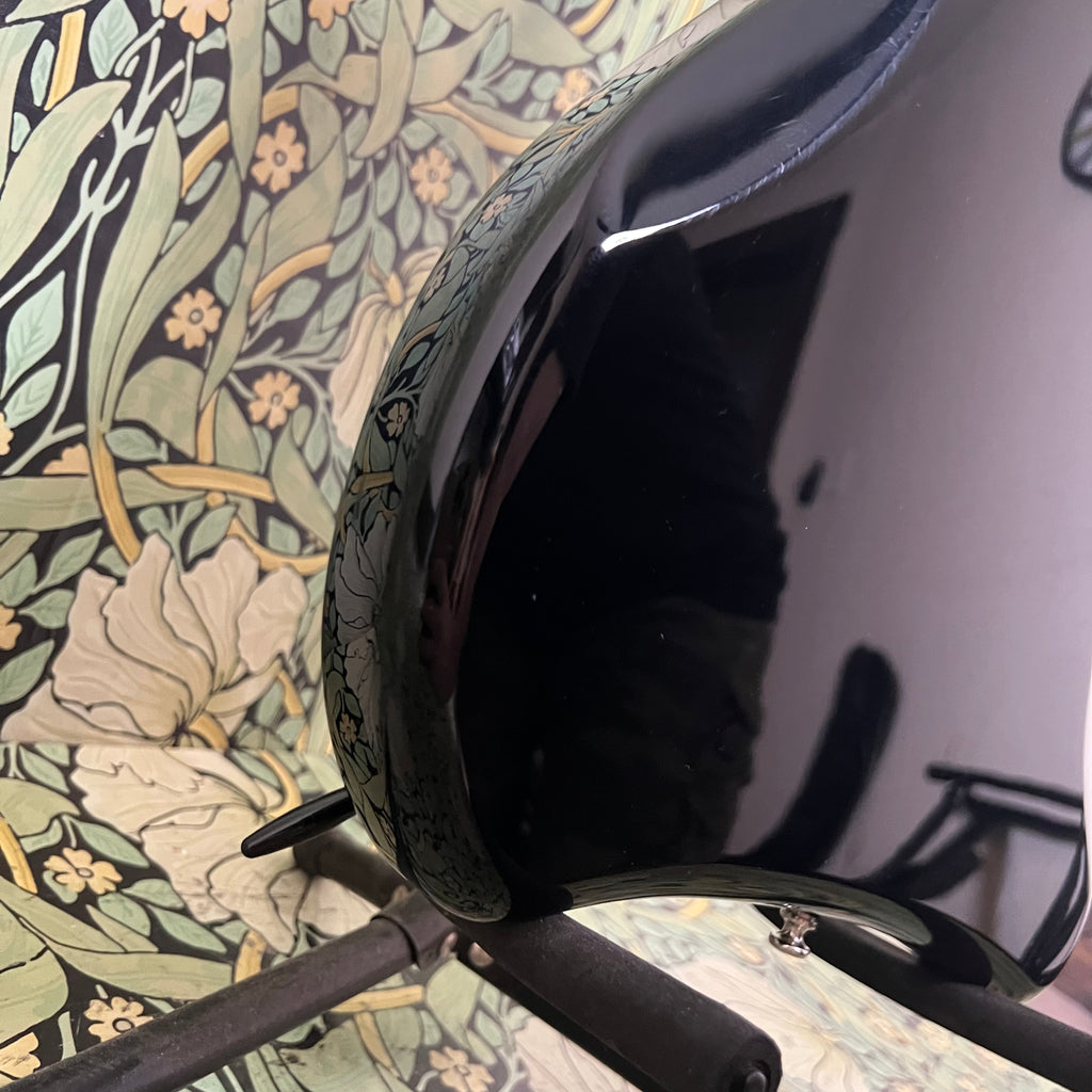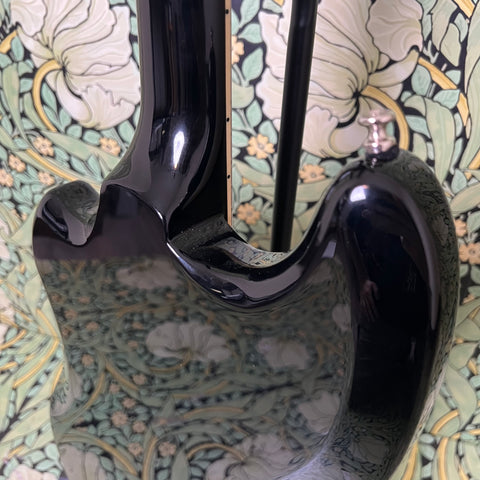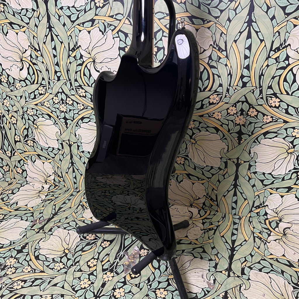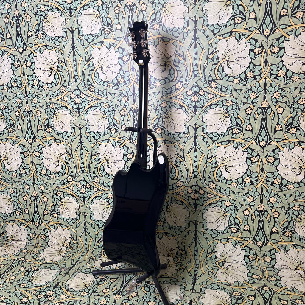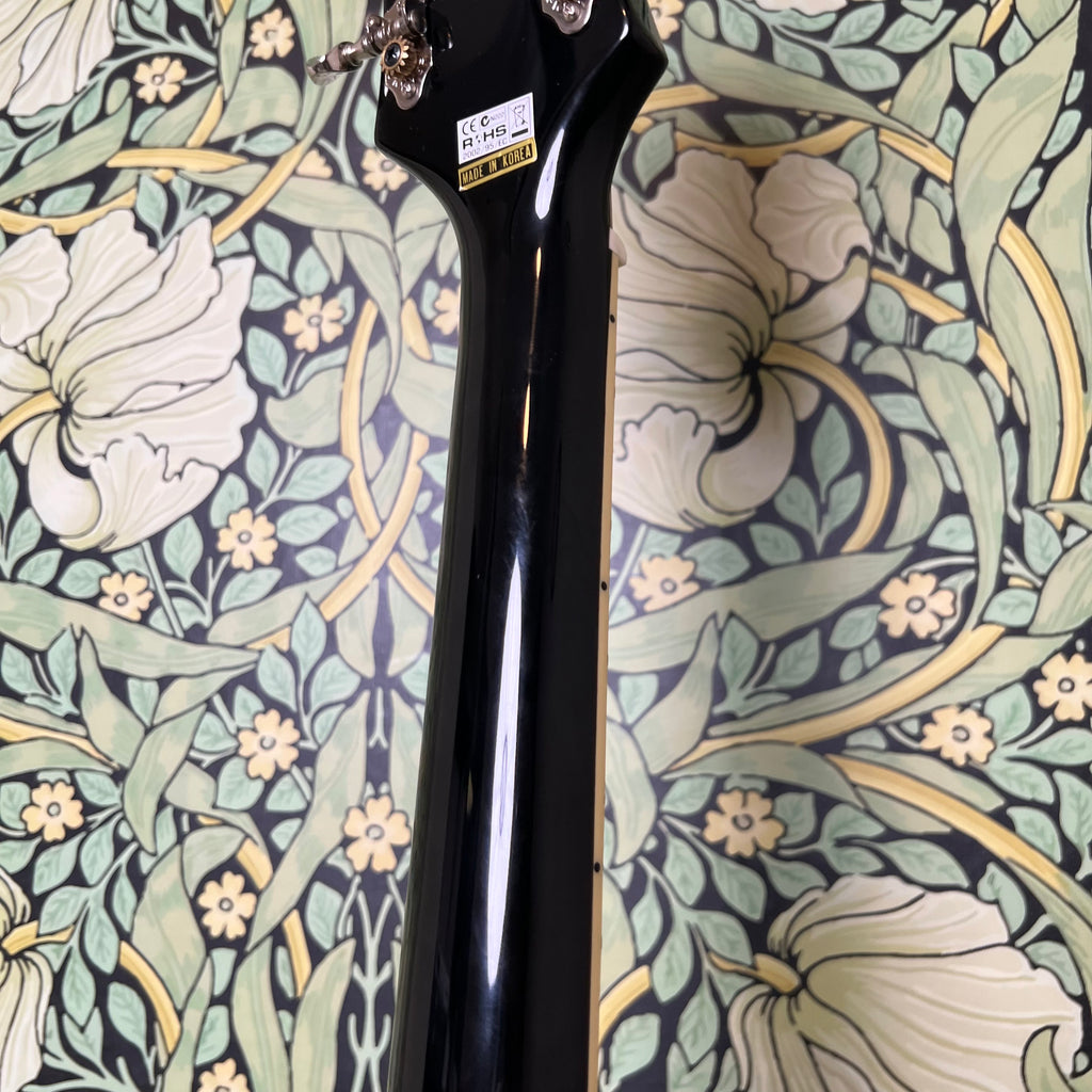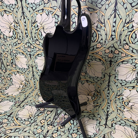 The original Guild Thunderbird was well, a rare bird. First unveiled in the 60's, they were hard to come by and thus developed a cult followed. Answering to desires, Guild decided to reissue the T-Bird and here we are! Rocking a set neck style construction, this bad Larry is made entirely from mahogany under the beautiful gloss black finish! A sturdy choice to maintain a light yet quality feeling instrument weighing in at only 7.42lbs. Adorning the neck is a smooth rosewood fret board with block inlays sporting a thickness of .855 at the 1st and .965 at the 12th with a radius of 9.5" and a 1.695" nut width.