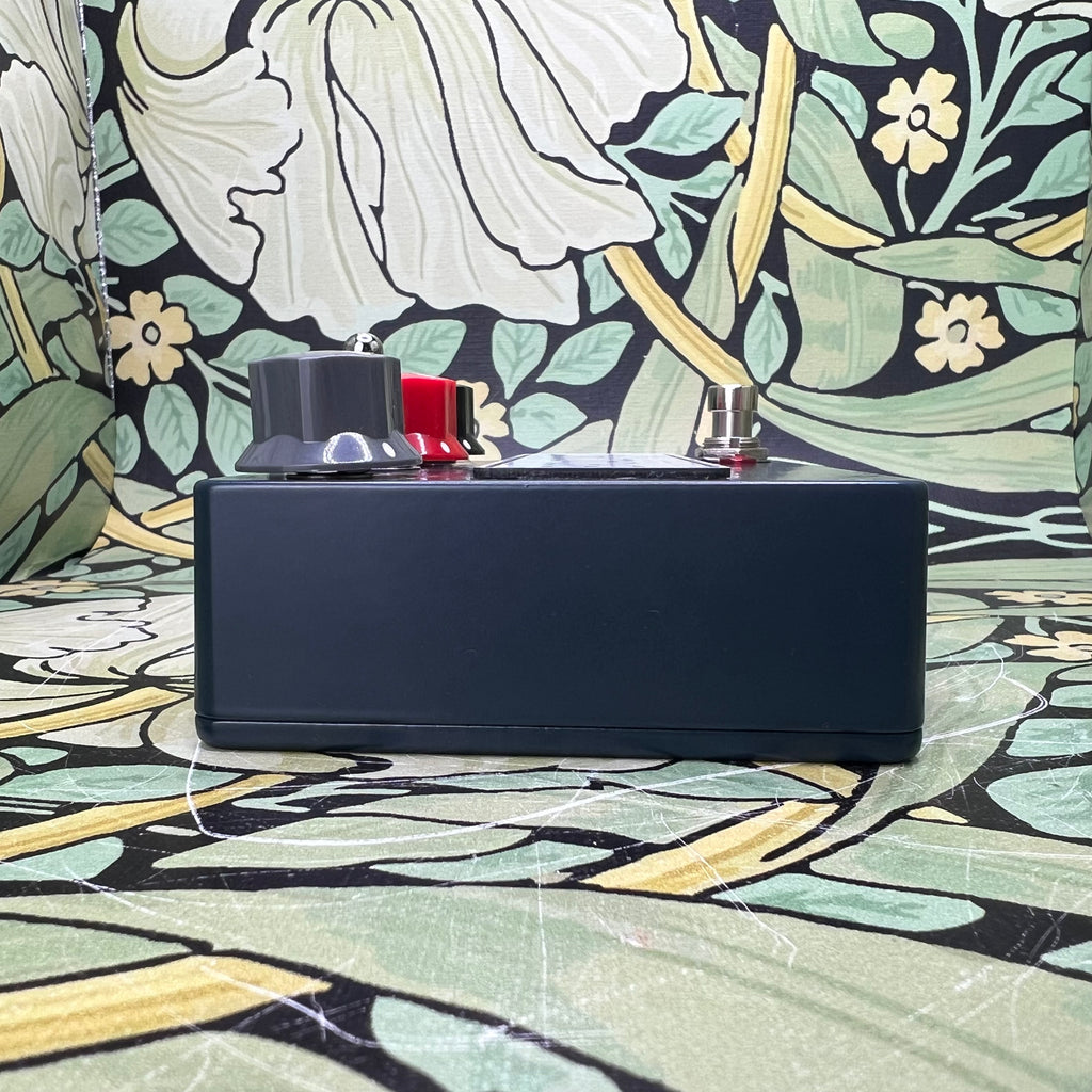 The Broadcast features a specially selected Triad steel-core transformer and a Germanium transistor. Advancing the gain on the Broadcast starts to saturate the transformer and the pedal’s discrete circuitry, giving rise to a gentle and dynamic compression coupled with subtle thickening of the mid-range. With the gain switch in the high setting and the trim control wound up, the Broadcast starts to deliver heavier distorted sounds with a warm and fuzzy edge to them.