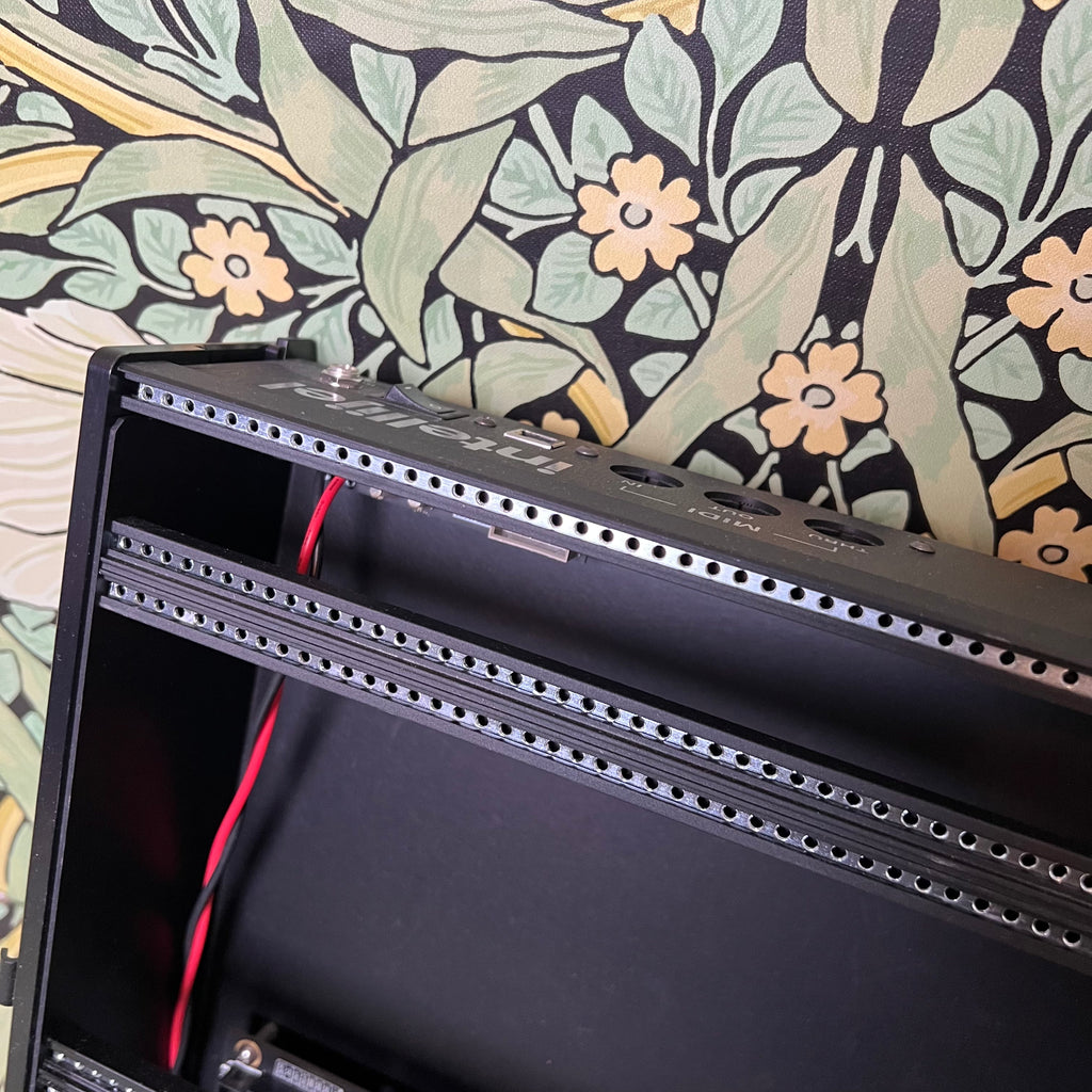 The Intellijel CASE-7U-104HP Eurorack case combines ample space for your modules with the high-spec TPS80WMAX power supply, which is capable of powering up to 28 modules. You'll have two 104HP rows for your Eurorack modules, plus one 104HP row for Intellijel 1U utility modules. Its rugged anodized aluminum lid is deep enough to close the case with your cables still patched in. And the CASE-7U-104HP features retractable feet that offer two different angles.