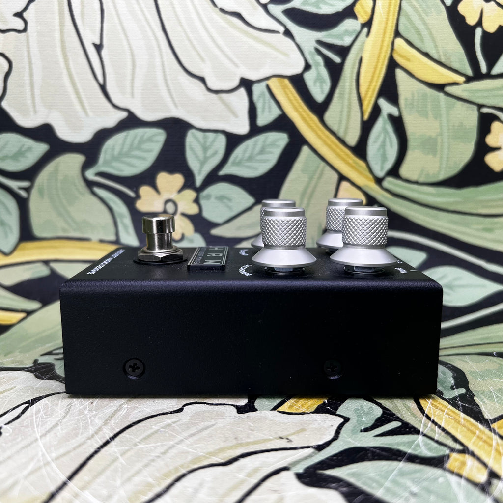 While the J. Rockett Hot Rubber Monkey (HRM) V2 overdrive pedal dishes out all the dirt of its V1 predecessor, it also adds a significantly revamped tone and control scheme to better capture the feel and response of an overdriven D-style HRM-equipped amplifier. J. Rockett’s firsthand analysis of an original D-style model even inspired the complete replacement of the HRM V1’s EQ section, yielding a new configuration comprising a treble-shaping Top End knob and a Midrange control that allows you to tweak your tone from a harmonic-rich blooming overdrive to the original HRM’s iconic throaty rasp. Factor in the V2 version’s premium NOS parts, and it’s clear there’s no monkey business (rubber or otherwise) involved with the J. Rockett Hot Rubber Monkey (HRM) V2 overdrive.